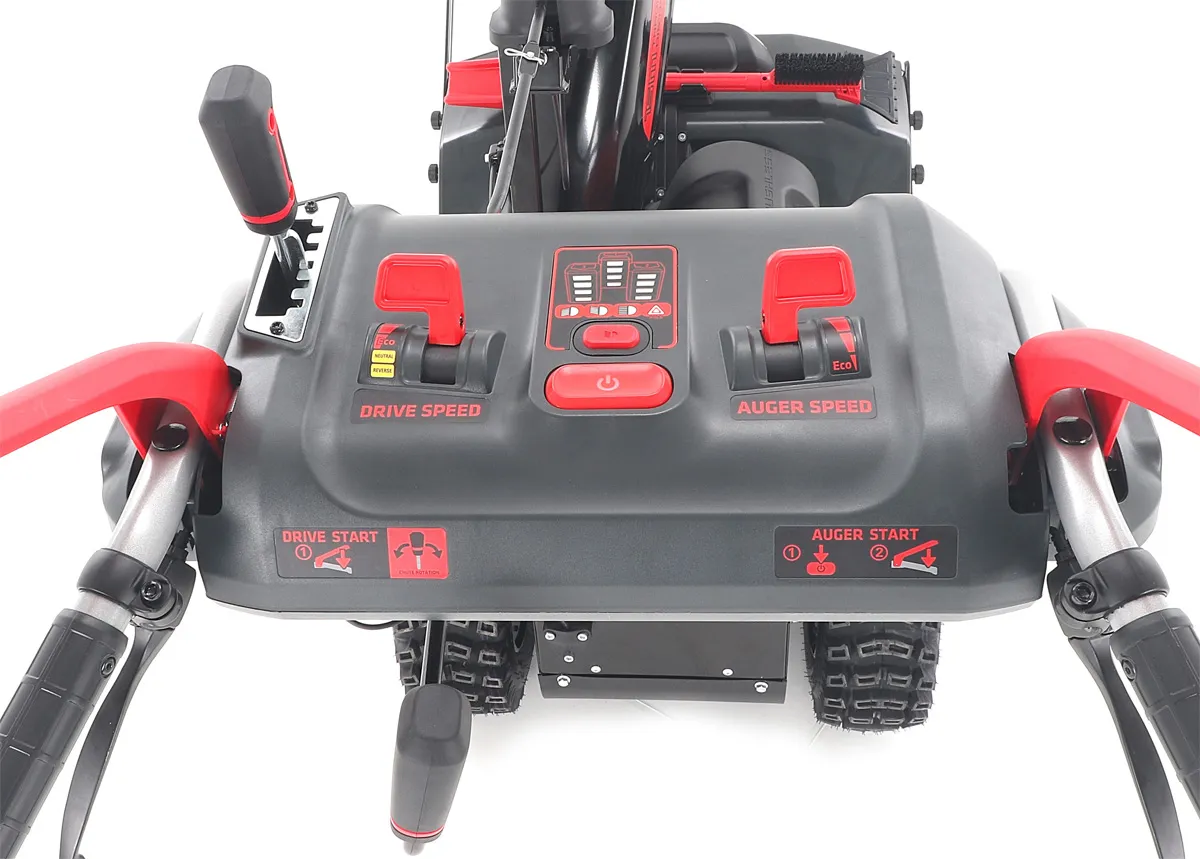 - 82SN61 je výkonná 82V bateriová sněhová fréza s vlastním pojezdem pro profesionální použití, s pracovní šířkou 61cm a vysoce výkonným dvoustupňovým odhazovacím systémem pro snadný úklid sněhu v oblastech, jako jsou příjezdové cesty, chodníky, parkoviště a veřejná prostranství. Výkon odpovídá benzinovému motoru o obsahu 254 ccm. Vyhřívané rukojeti pro pohodlné používání v chladných podmínkách.