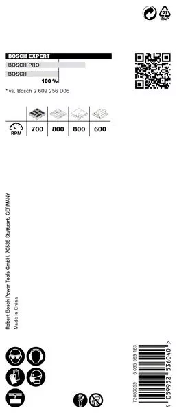 - Text s tvrzením o výkonnosti: Při vrtání odolných materiálů vydrží až 50× déle než děrovka Bosch 2609256D05