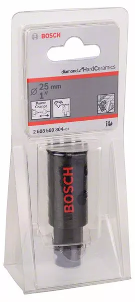 - Děrovka Diamond for Hard Ceramics je vybavena jedinečným výměnným adaptérem Power Change firmy Bosch s nejrychlejším upínacím systémem na trhu.