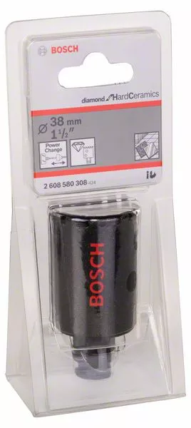 - Děrovka Diamond for Hard Ceramics je vybavena jedinečným výměnným adaptérem Power Change firmy Bosch s nejrychlejším upínacím systémem na trhu.
