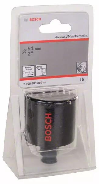 - Děrovka Diamond for Hard Ceramics je vybavena jedinečným výměnným adaptérem Power Change firmy Bosch s nejrychlejším upínacím systémem na trhu.
