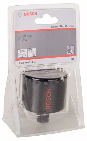 - Děrovka Diamond for Hard Ceramics je vybavena jedinečným výměnným adaptérem Power Change firmy Bosch s nejrychlejším upínacím systémem na trhu.