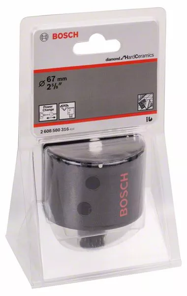 - Děrovka Diamond for Hard Ceramics je vybavena jedinečným výměnným adaptérem Power Change firmy Bosch s nejrychlejším upínacím systémem na trhu.