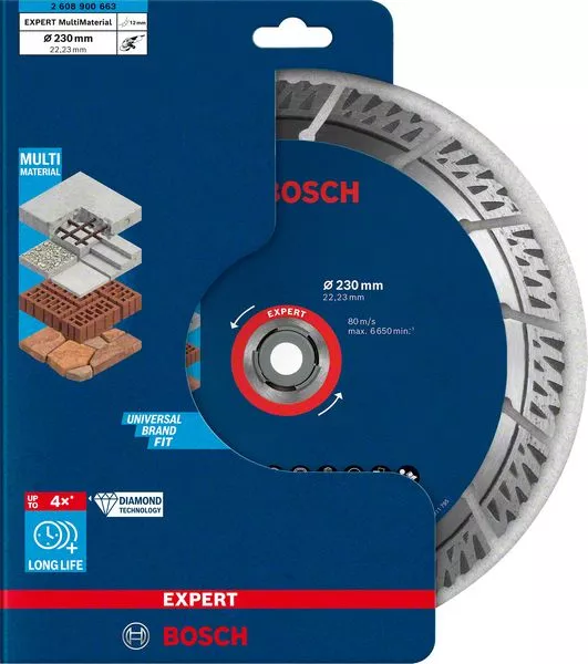 - Tato kombinace optimálních diamantových zrn a pokročilého designu znamená, že diamantový řezný kotouč Bosch EXPERT MultiMaterial nabízí bezkonkurenční životnost.