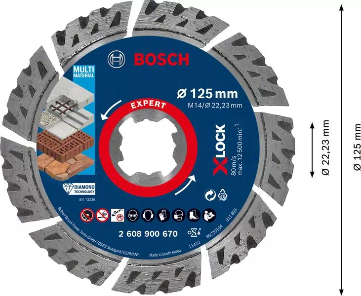 - Tato kombinace optimálních diamantových zrn a pokročilého designu znamená, že diamantový řezný kotouč Bosch EXPERT MultiMaterial X-LOCK nabízí bezkonkurenční životnost.