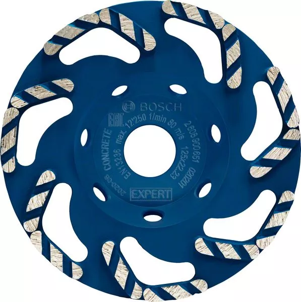 - Hrncový kotouč EXPERT Concrete je dokonce rychlejší než standardní diamantový hrncový kotouč Bosch: Dosahuje toho díky integraci technologie Diamond Technology s nejnovějšími designovými inovacemi.