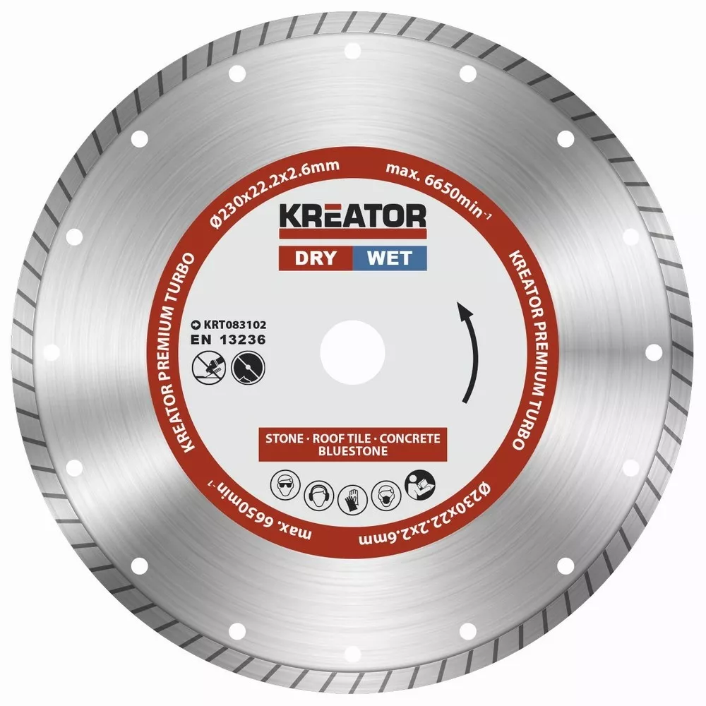 Diamantový kotouč celoobvodový 230mm PREMIUM TURBO Kreator KRT083102