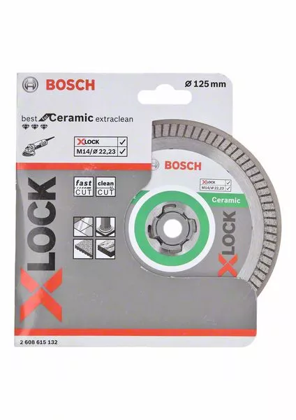 Diamantový řezný kotouč Best for Ceramic Extraclean Turbo systému X-LOCK, 125×22,23×1,4×7 BOSCH 2608615132