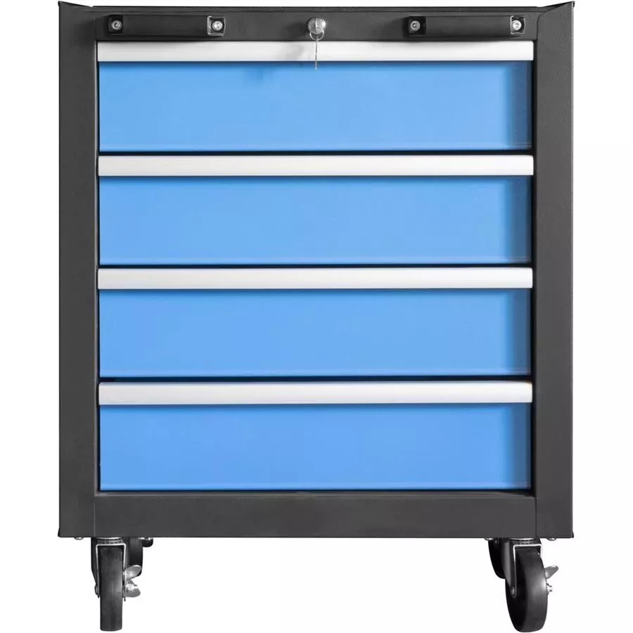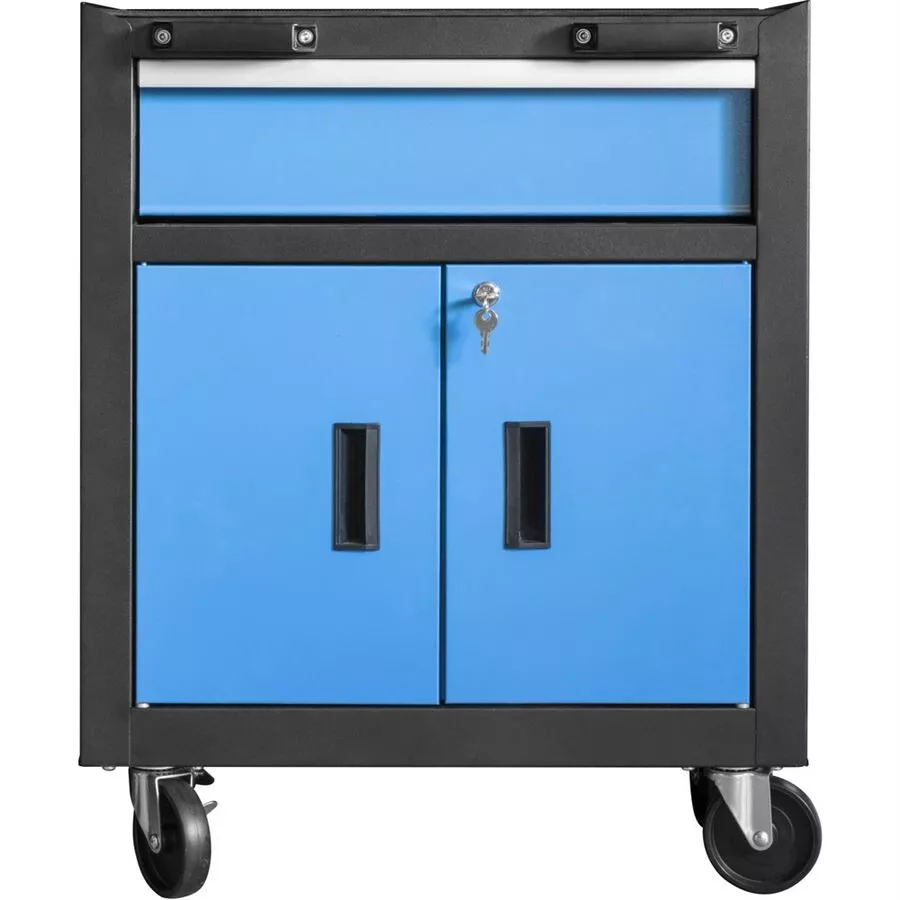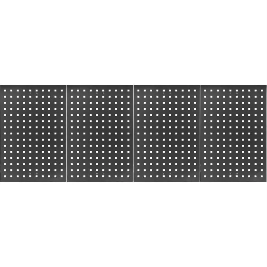 - Skříň závěsná:• Ocelový plech s práškovým nástřikem• 3 výškově nastavitelné police• uzamykatelné křídlové dveře• nastavitelné nožkySkříň dvoukřídlá:• Ocelový plech s práškovým nástřikem• s oboustranně uzamykatelnými dveřmi• Střední část otevřená se 2 policemi• Perforovaný zadní panel se standardizovanou perforací: čtverec, 10 x 10 mm|rozteč otvorů 38 mmPerforovaná stěna:• Ocelový plech s práškovým nástřikem• normalizovaná perforace: čtvercová, 10 x 10 mm|rozteč otvorů 38 mmPracovní stůl:• Ocelová konstrukce s práškovým nástřikem• nastavitelné nožky• Robustní pracovní deska z pryžového dřevaDílenské vozíky:• Ocelový plech s práškovým nástřikem• Aretační kolečka• 1 x se 4 uzamykatelnými zásuvkami• 1 x se zásuvkou a 2 uzamykatelnými dvířky• Dodávka je částečně smontovaná na paletěMožné doplňky:• 40768 sortiment držáků nástrojů 28 ks