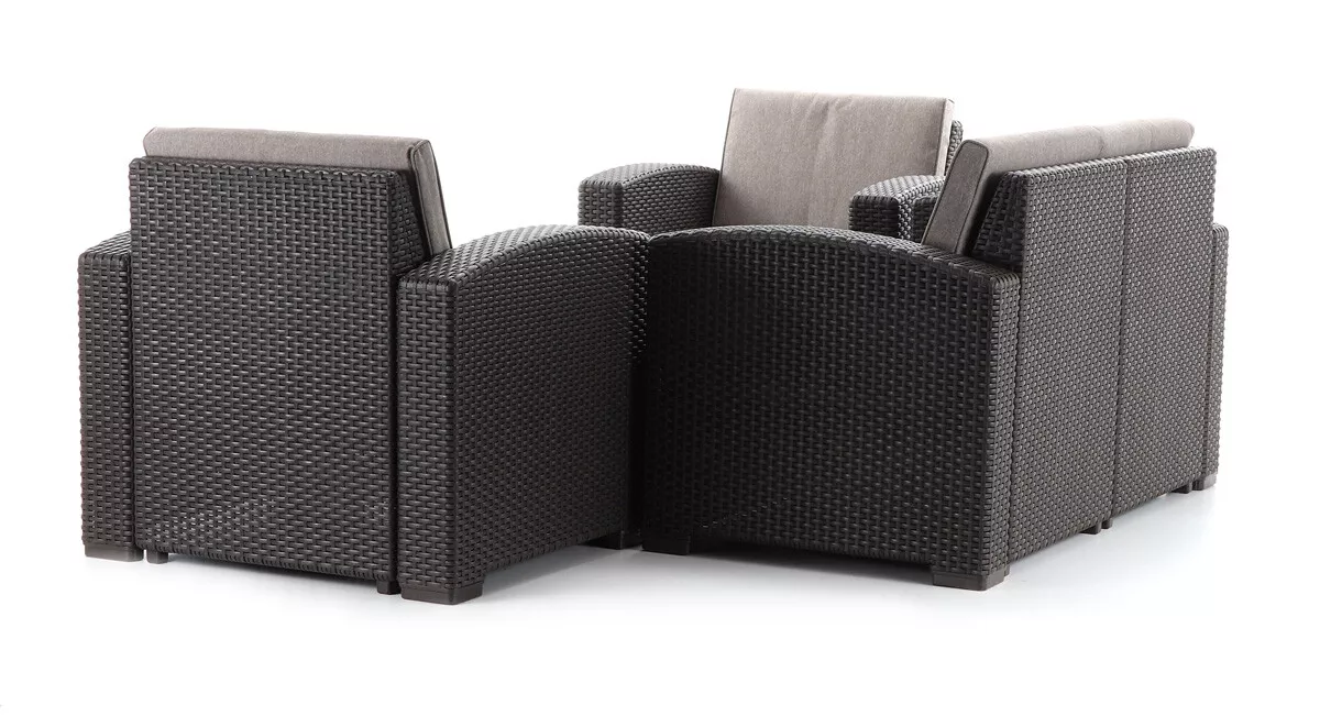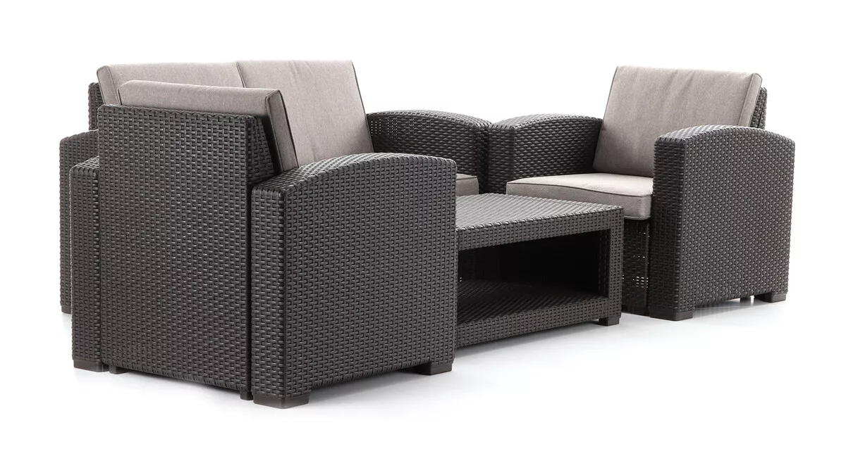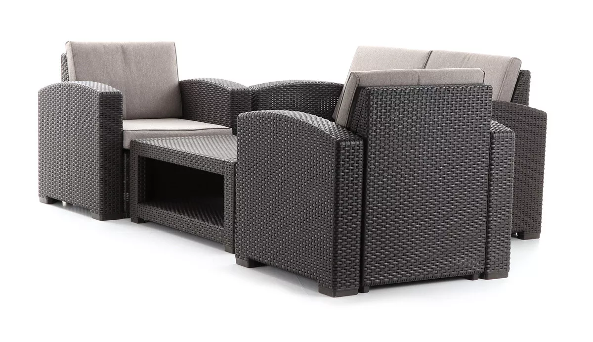 - Nábytek má originální povrchovou strukturu napodobující přírodní ratan. Ideální pro pohodlné venkovní posezení na vaší zahradě či terase.