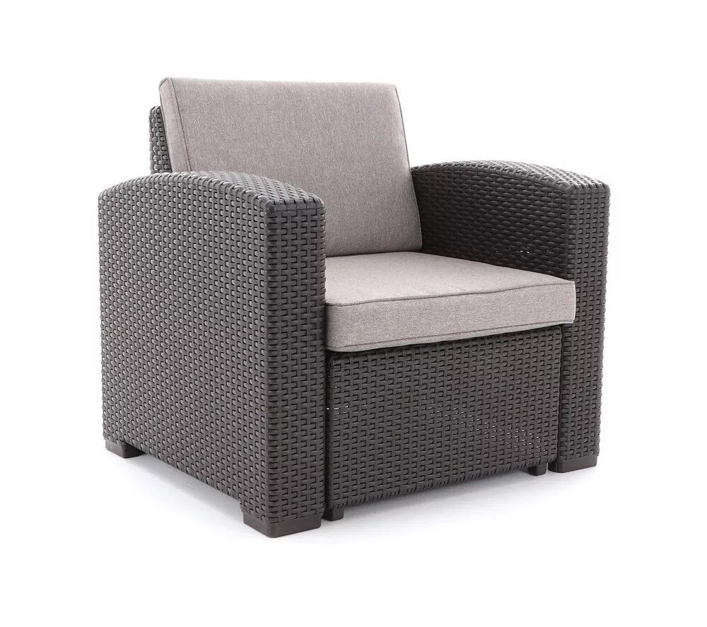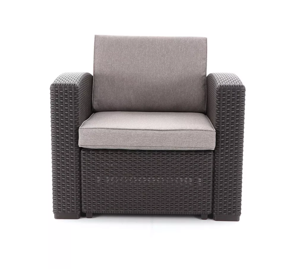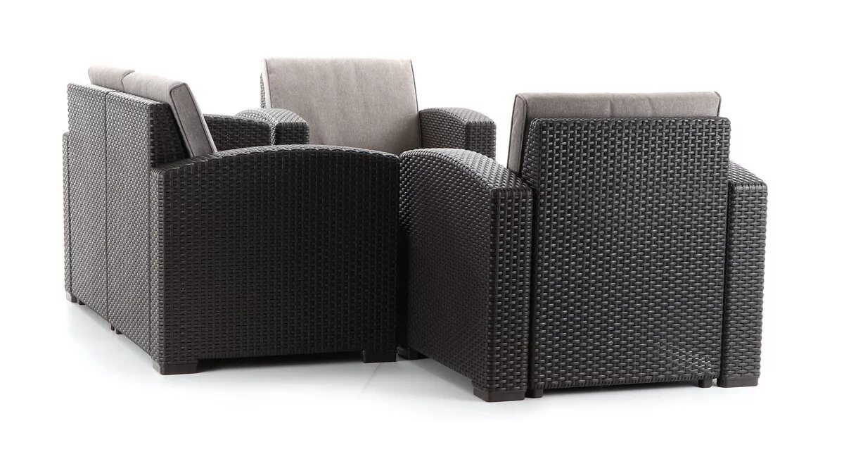 - Vysoce odolné účinkům nepříznivých povětrnostních podmínek a UV záření. Barva konstrukce hnědá, polstry jsou hnědošedé barvy.