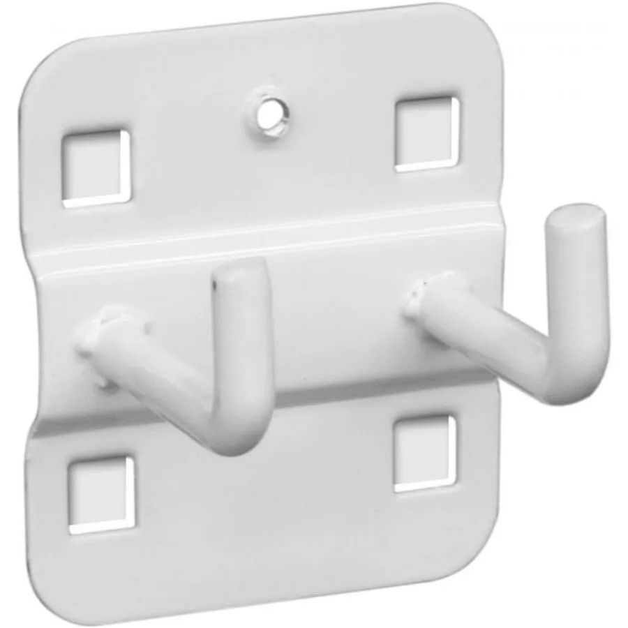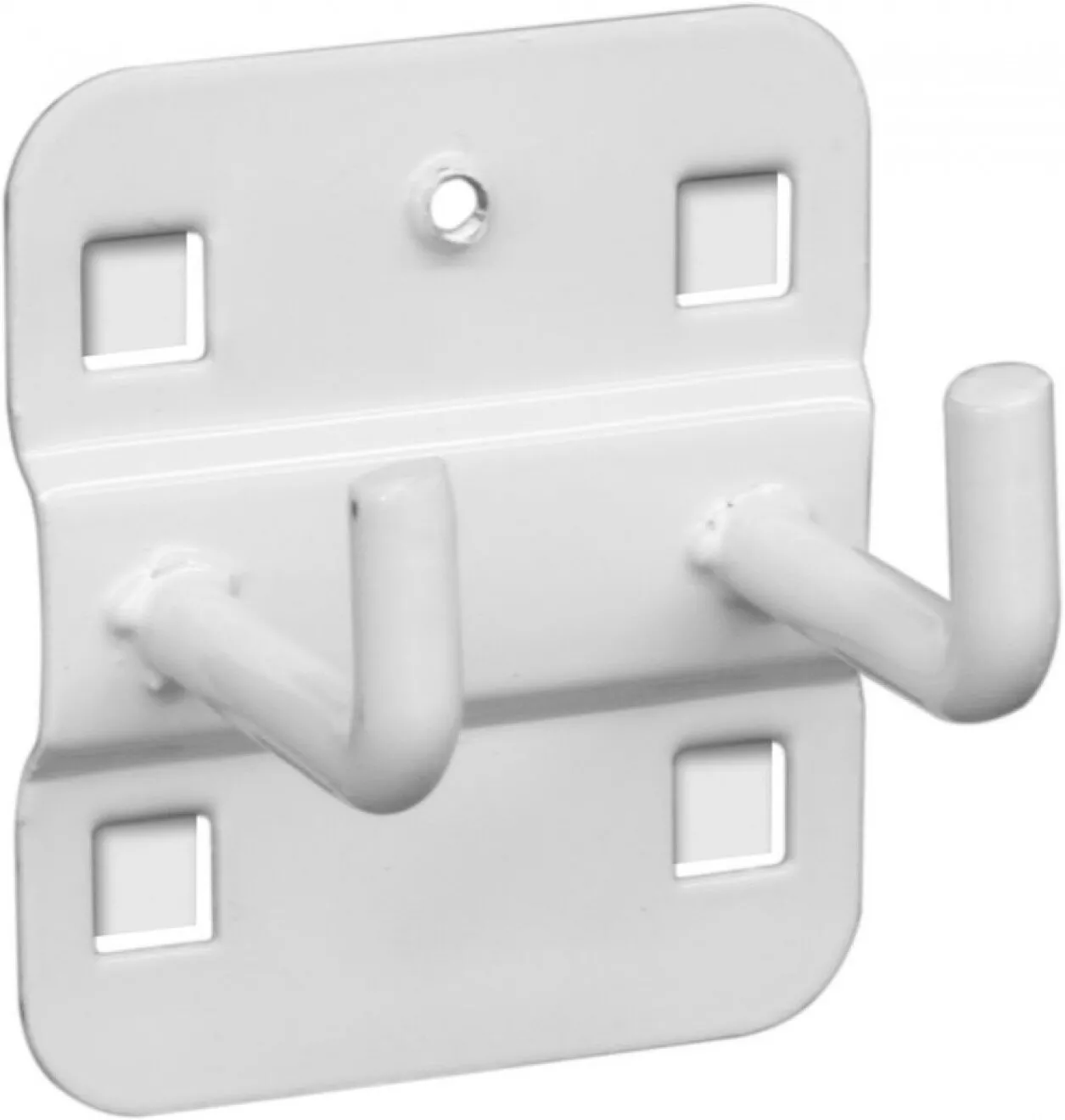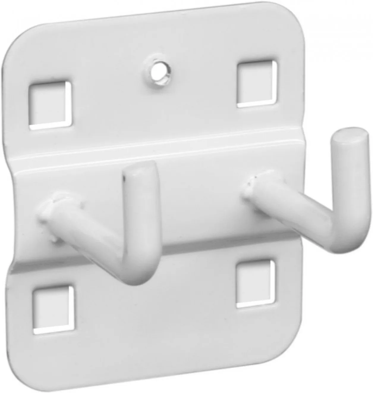 - Dvojitý hák s pravoúhlým zakončením, kompatibilní s dílenskými závěsnými systémy, které využívají čtvercové děrování 10 mm2