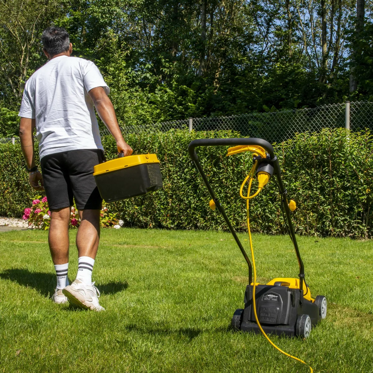 - Se svou šířkou záběru 320 mm si tato elektrická sekačka poradí s každým trávníkem o rozloze až 250 m².