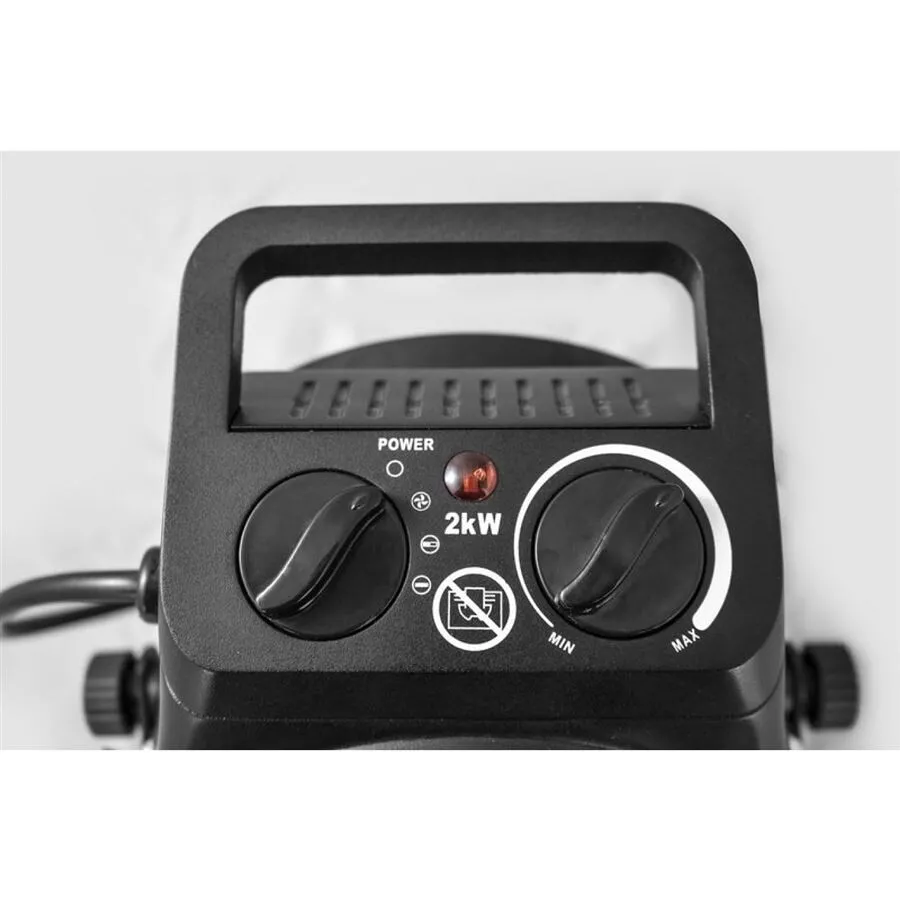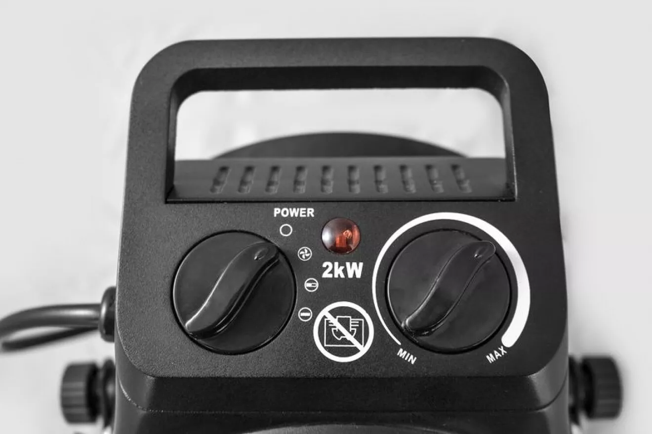 - tepelný výkon: 2 kW (-> 1.720 kcal/hod., 2 topné stupně: 1 kW/2 kW), ventilátor