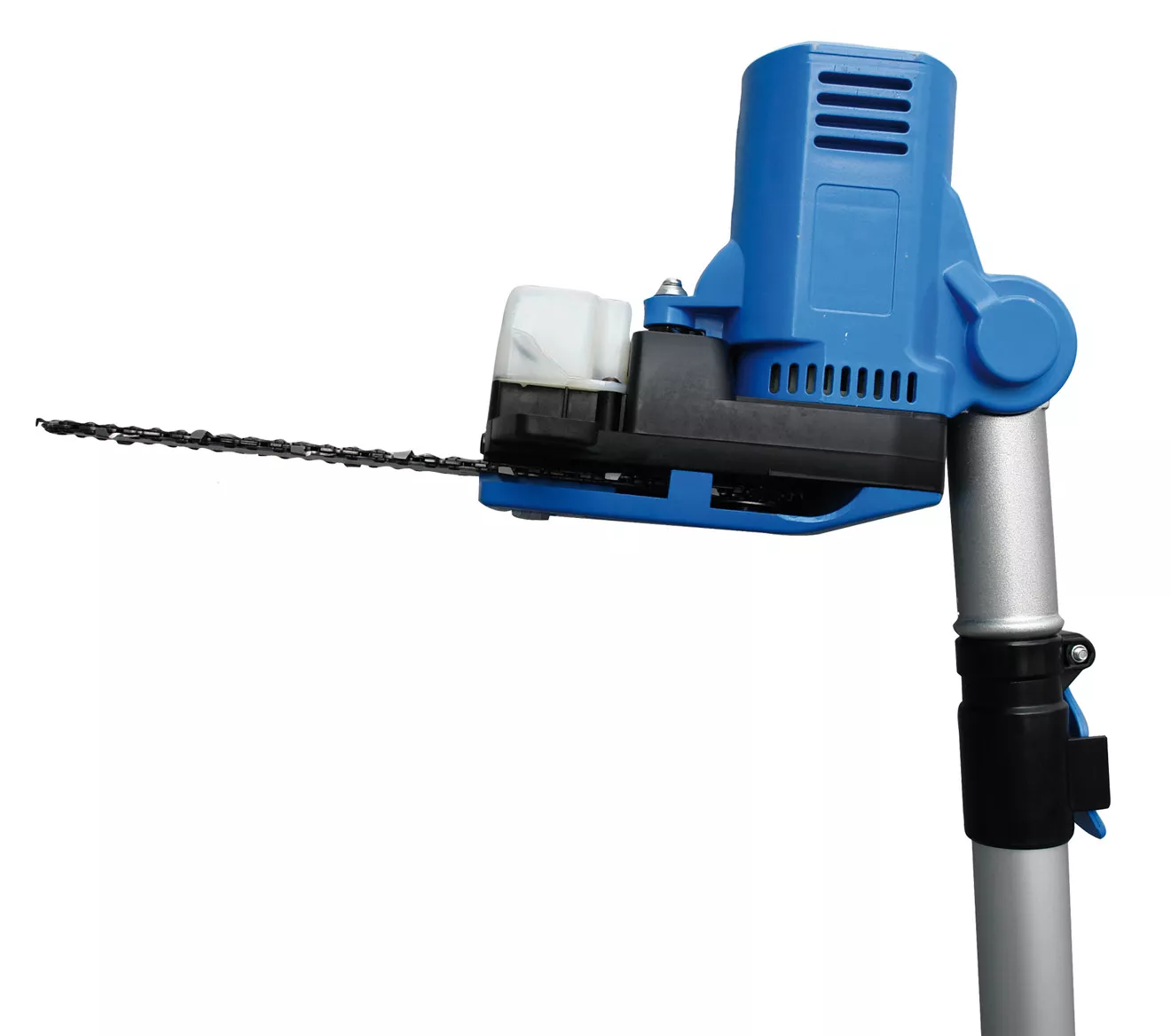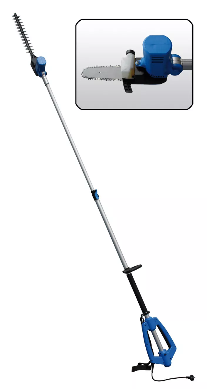 - Praktická kombinace elektrické vyvětvovací pily/plotostřihu na teleskopické vodicí tyči, určená k prořezávání nebo tvarování korun stromů, zastřihování vzrostlých živých plotů apod