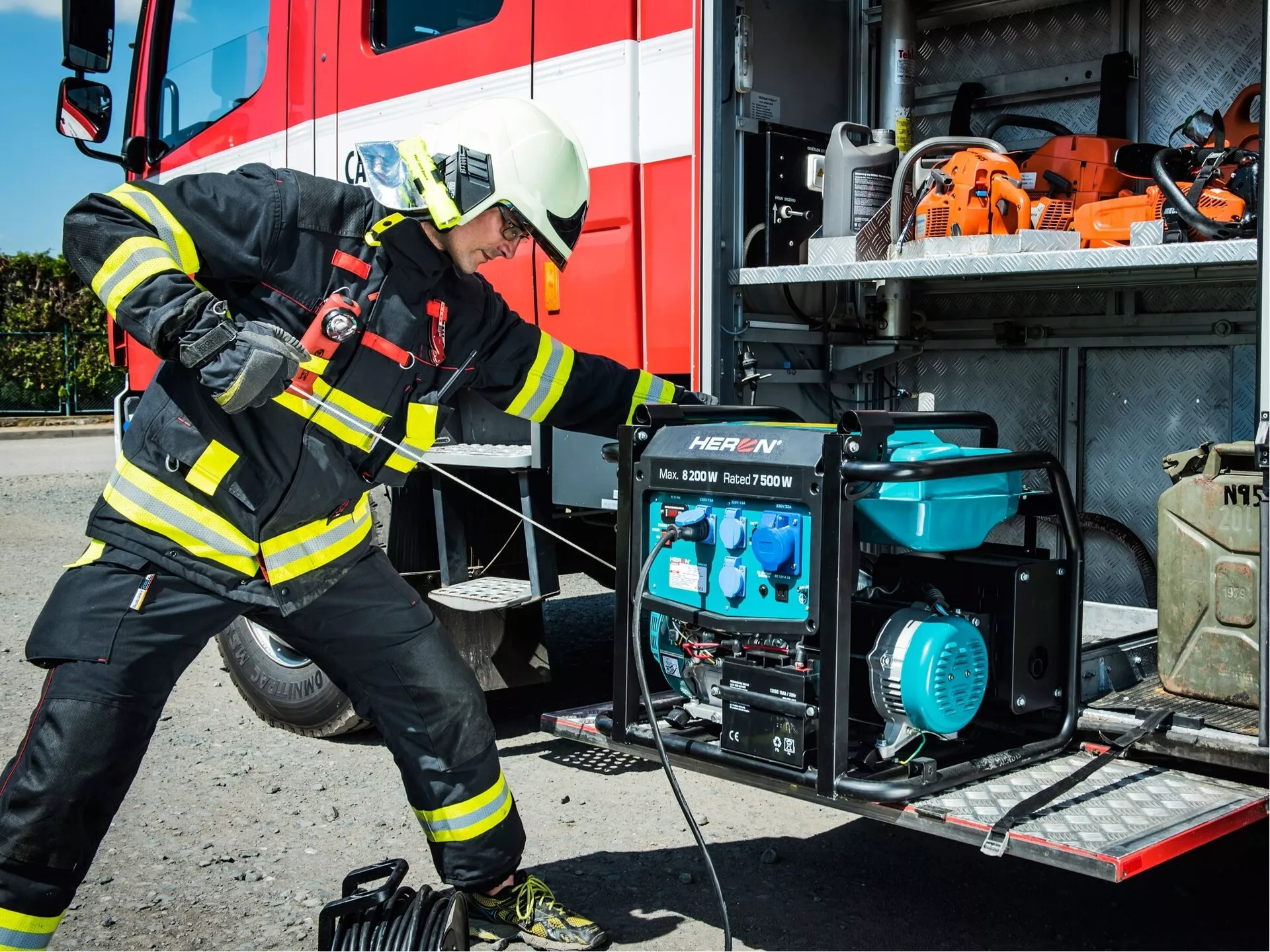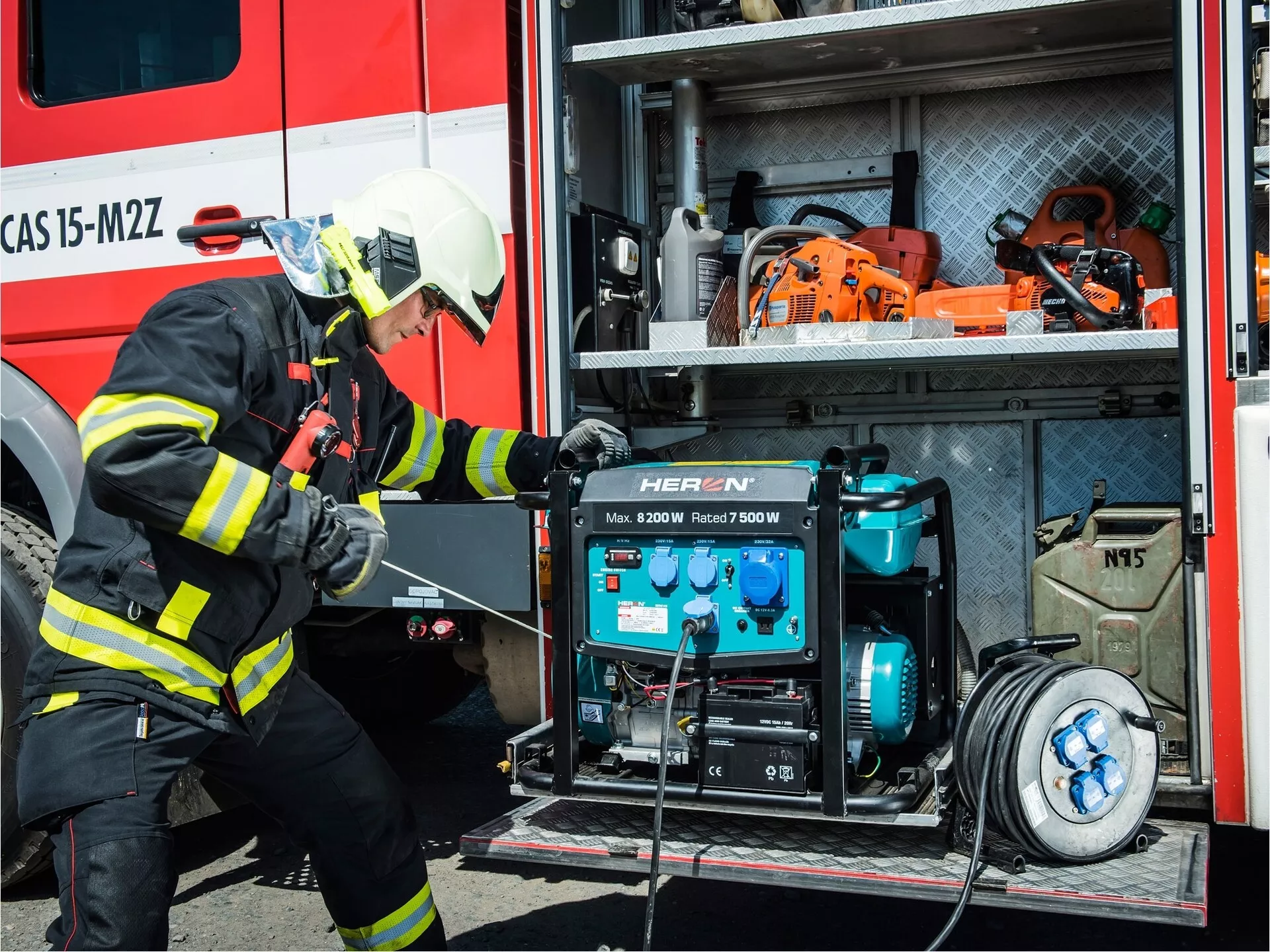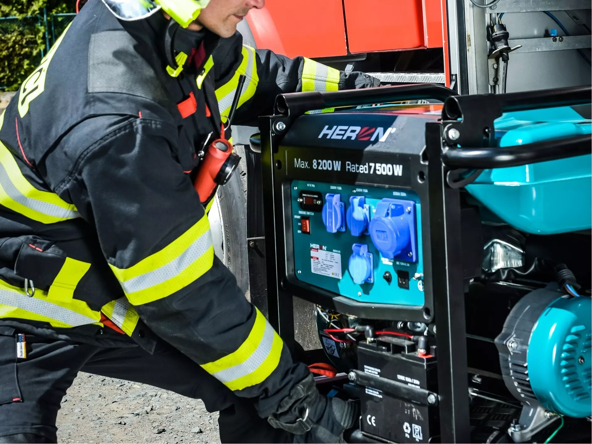 - Elektrocentrála je určena k používání ve stavebnictví a při montážních pracích, ale také jako záložní zdroj elektrické energie pro mobilní servisní střediska a rekreační účely. Stroj je vybaven jednotkou AVR, která vyrovnává výstupní napětí. Proto je možné použít je k napájení jemných elektronických přístrojů, za předpokladu dodržení správného postupu používání. Sklopitelné madlo a pevná gumová kola, která jsou součástí dodávky, umožňují snadný převoz elektrocentrály na místo potřeby podobným způsobem jako cestovní zavazadlo s madlem a kolečky. Centrála je vybavena třemi 16A a jednou 32A zásuvkou s 230V, které umožňují připojit jak běžné spotřebiče, tak spotřebiče s vysokým odběrem (až 7,5kW) jako jsou např. svařovací invertory, stolní pily, velké kompresory... Dále je vybavena 12V/8,3A zásuvkou se stejnosměrným proudem a součástí příslušenství jsou rovněž nabíjecí kabely, díky nimž lze elektrocentrálou dobíjet 12V autobaterie. Díky elektrickému startu nastartujete a vypnete centrálu stiskem tlačítka jedním prstem. Tento start je zajišťován AGM bezúdržbovou baterií s dlouhou životností dobíjenou chodem elektrocentrály. Pro příjemnější práci blízko elektrocentrály jsme ji vybavili novým typem výfuku s nižší hlučností a příjemnějším zvukem.