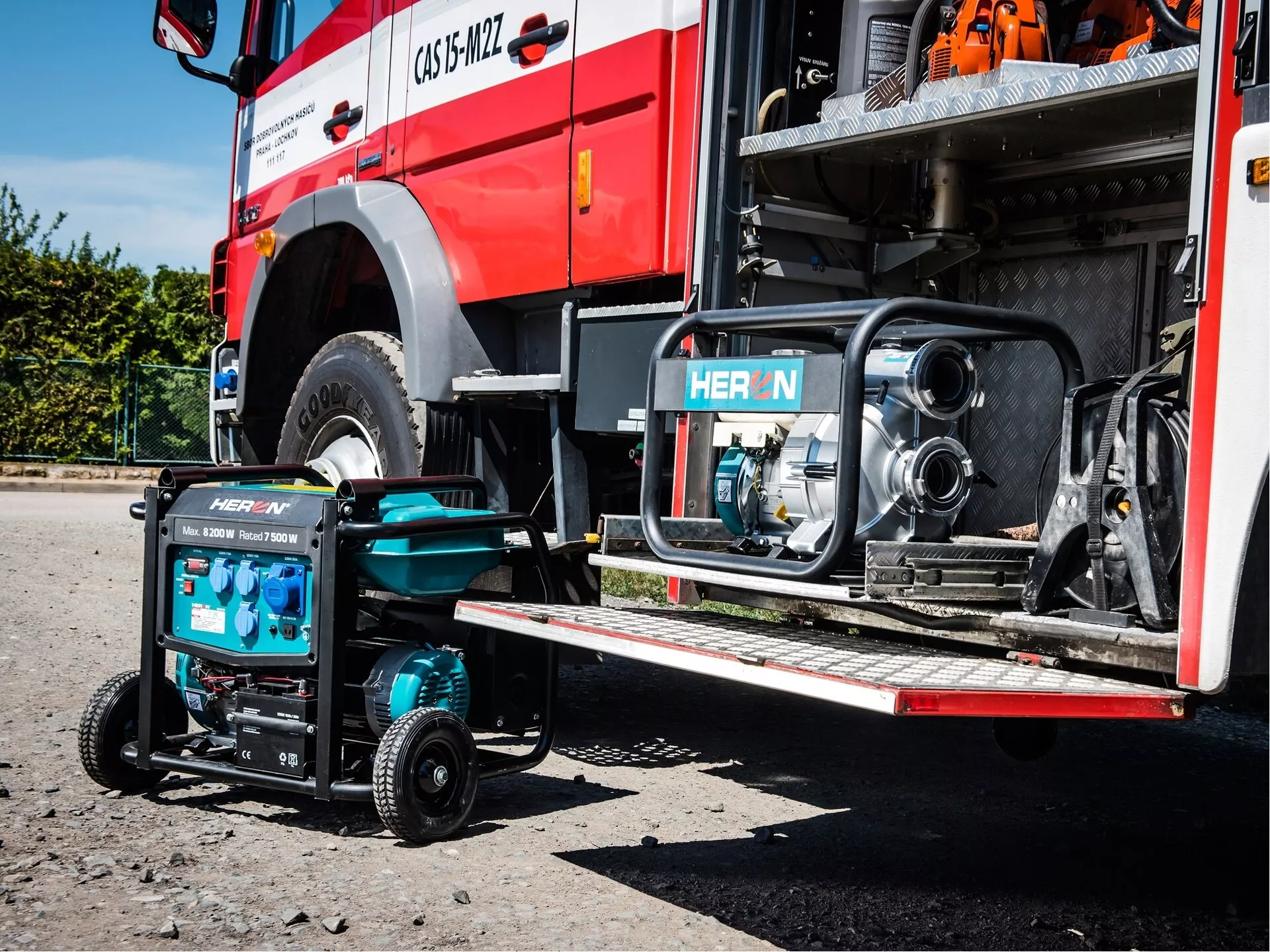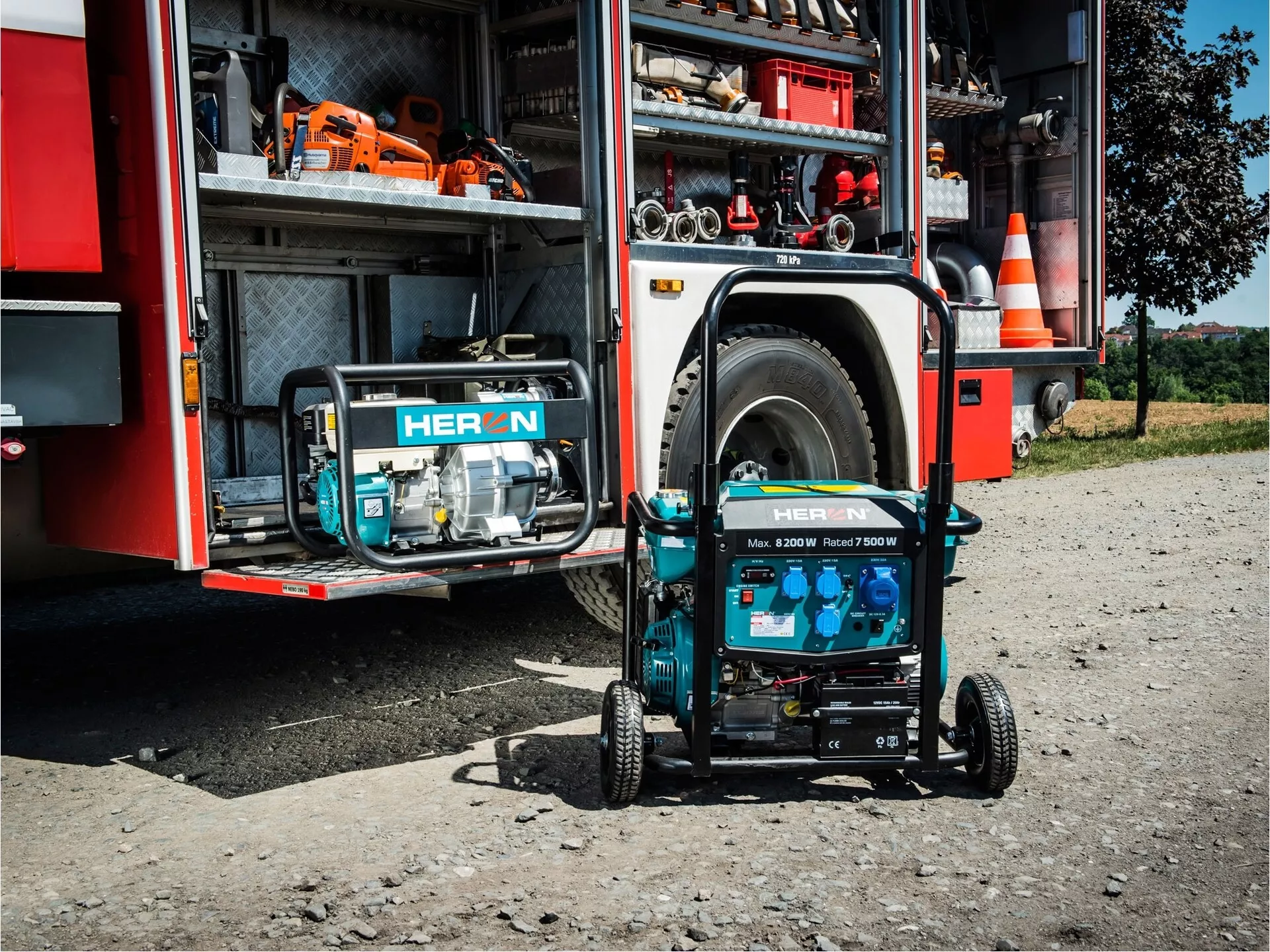 Elektrocentrála benzínová 17hp/8,2kw, podvozek, elektrický start HERON 8896145