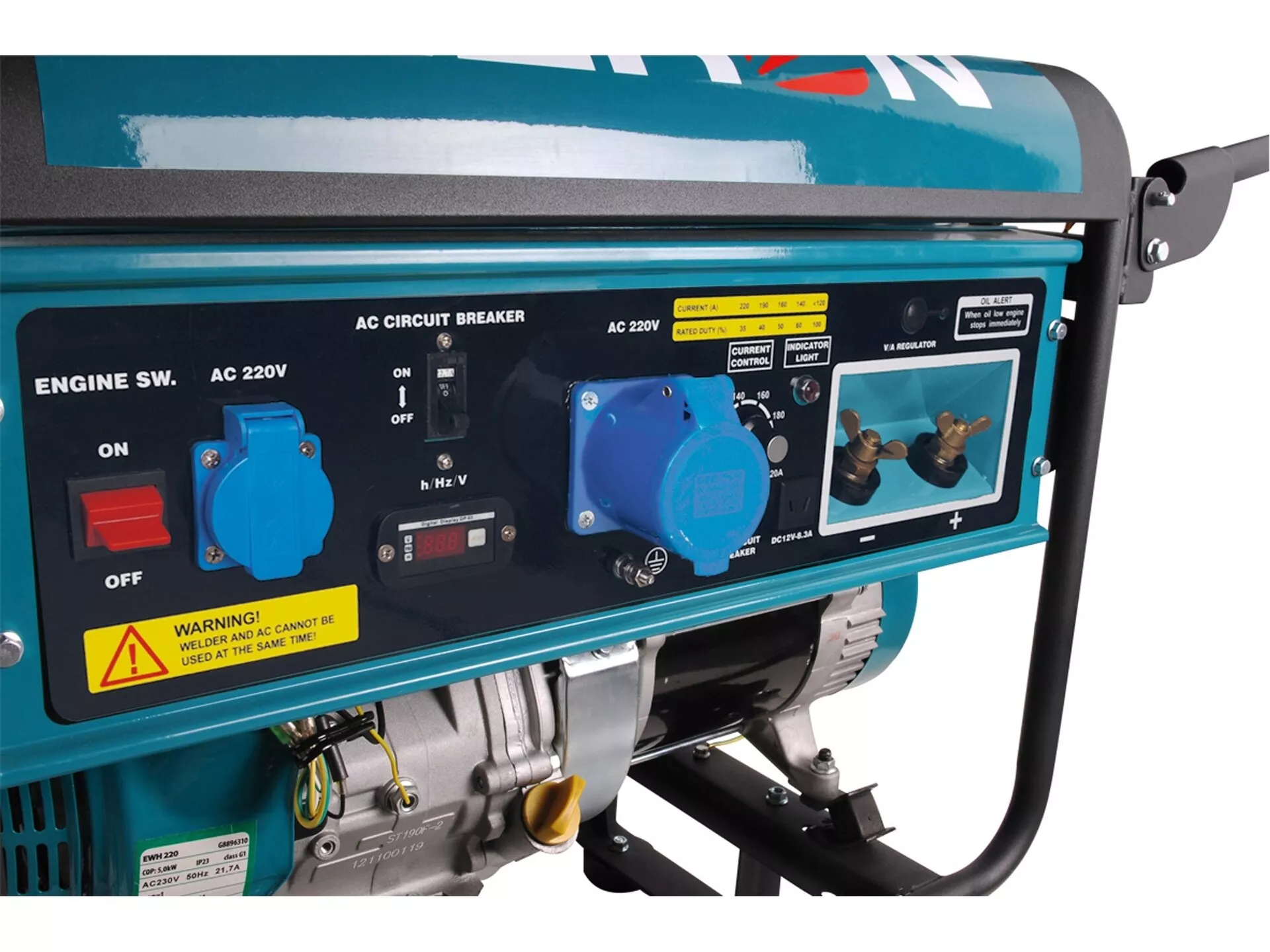 - Tato kvalitní víceúčelová elektrocentrála se svářečkou je určena hlavně pro použití ve stavebnictví a pro montážní práce. Lze ji použít pro napájení nářadí a ostatních spotřebičů do výkonu 5,5kW nebo jako silný 220A svářecí agregát pro náročnou práci. Je vybavena madly a kolečky pro snadnou manipulaci.