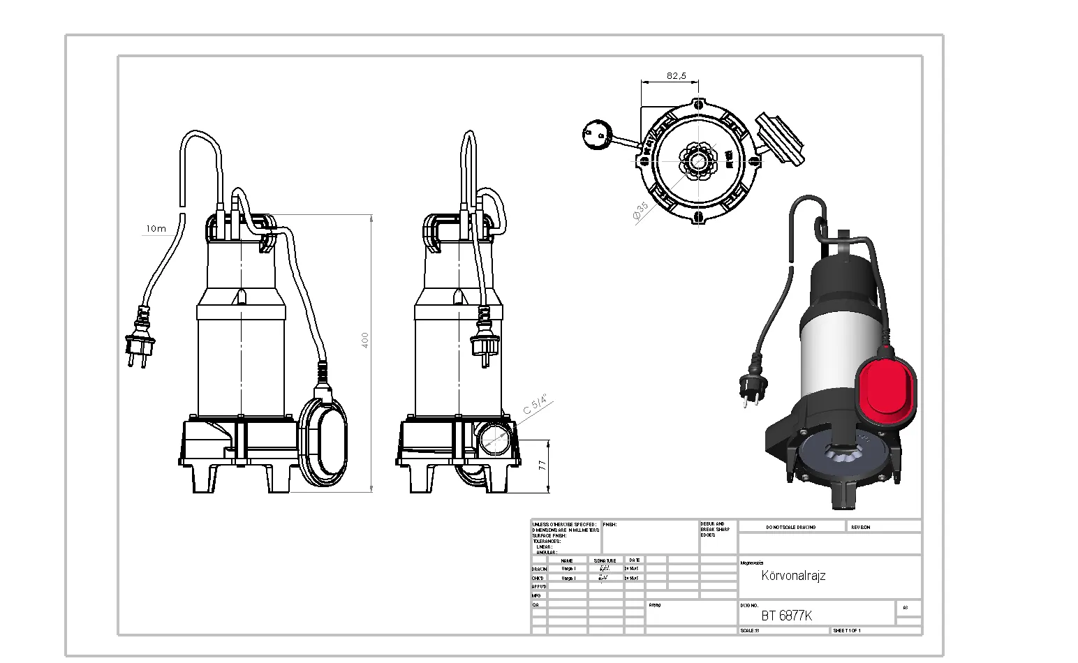 - Typ přívodního kabelu: H07 RNF 3 × 1 mm2