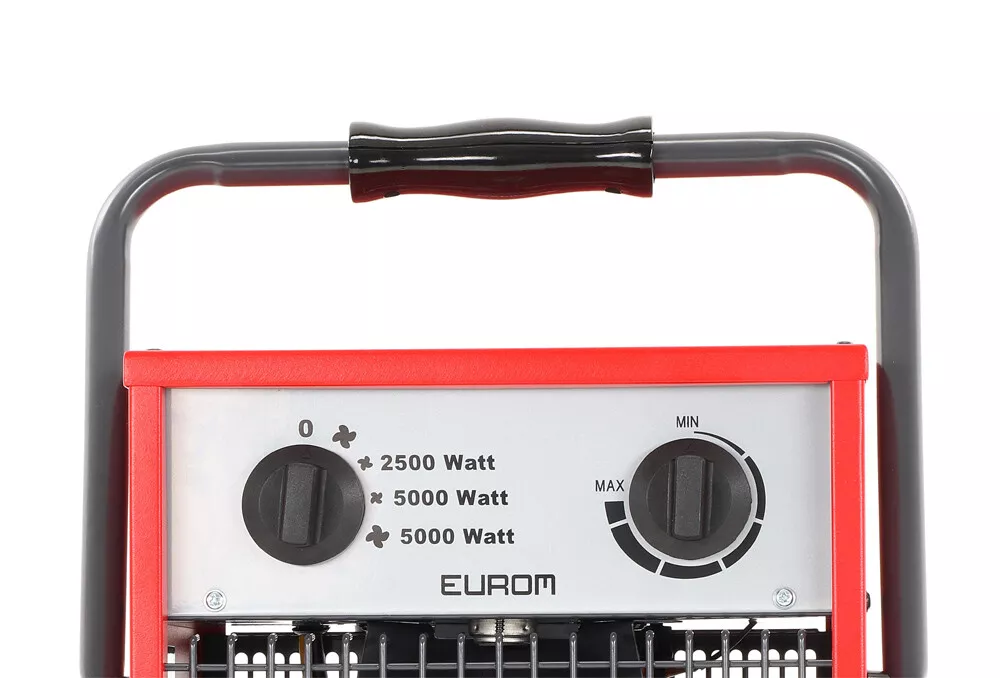 - Osvědčené průmyslové elektrické topidlo pro velké plochy: garáže, dílny a průmysl s výkonným ventilátorem. EUROM EK5001 topidlo produkuje čistý vzduch, topí rychle a bezpečně. Elektrická topidla jsou ideálním použitím pro dočasné využití nebo pro jiné mimořádné situace. Snadná manipulace. Elektrická topidla EUROM jsou vybavena pouze certifikovanými a vysoce kvalitními komponenty , což zajišťuje jejich spolehlivost a výkon. Elektrické topidlo s ventilátorem se zabudovaným termostatem a tepelnou pojistkou o max. výkonu 5 kW - napětí 400V. Toto topidlo je určeno pro profesionální používání do dílen a pracovních prostor. Mezi hlavní výhody tohoto přímotopu patří, že nespotřebovává kyslík a pracuje bez kouře, zápachu a vlhkosti.