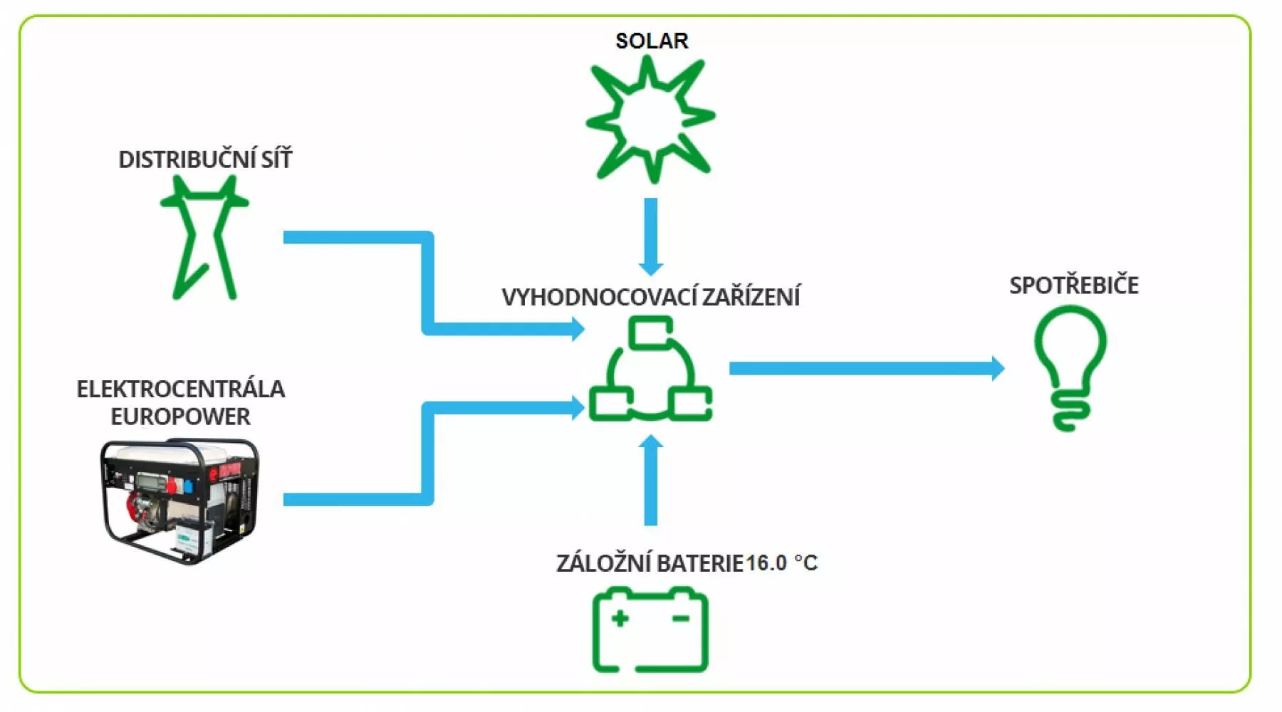 - •PDM1 - Tato elektrocentrála je osazena automatickým systémem PDM1, který společně s elektrickým startem zajistí při výpadku proudu ze sítě plynulý přechod napájení. Generátor EP6000E PDM1 lze použít jako záložní zdroj - záloha ostrovních/hybridních systémů, záloha požárních systémů, automatické dobíjení baterií atp.