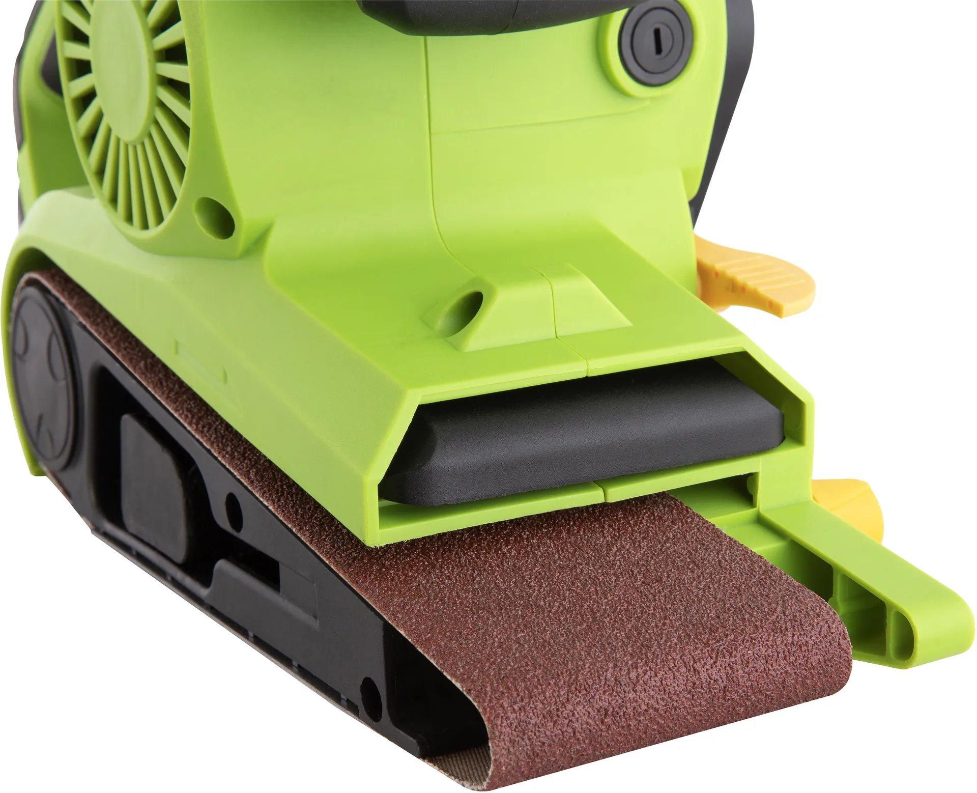 - pásovou bruskou zajistí též ergonomické měkčené madlo díky kterému bude i delší práce nenáročná pro jakéhokoliv uživatele.