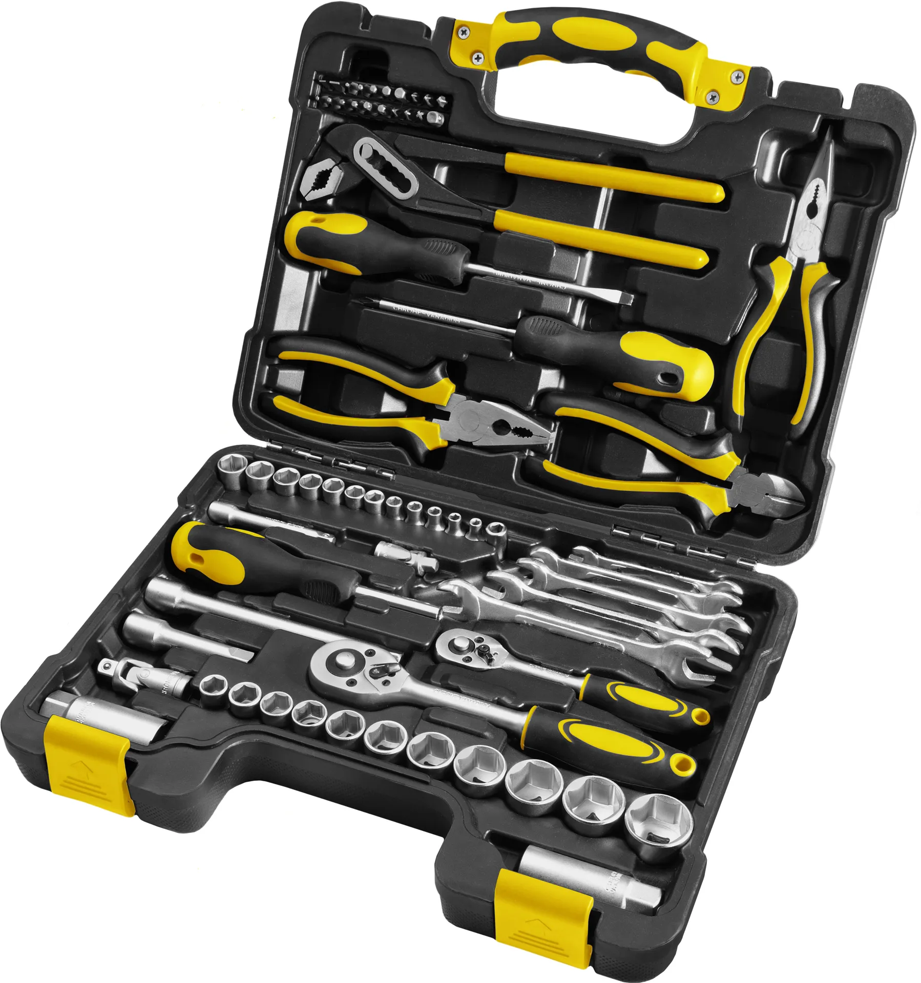 - Žádná domácnost se neobejde bez alespoň pár kousků základního nářadí. Set s 65 kusy náčiní od roky prověřené české firmy FIELDMANN FDG 5003-65R je dobrou investicí jak pro kutila začátečníka, tak pro majitele domu či bytu, který si rád sám opraví drobné závady. Plastový kufřík obsahuje dvě ráčny velikosti 3/8 a 1/4 palce, k nimž samozřejmě náleží sada pasujících nástrčných klíčů, včetně dvou ořechů na zapalovací svíčky. Součástí je i set rozdílných kleští, 5 stranových klíčů a 2 šroubováky. Směle tedy můžeme prohlásit, že před touto sadou neobstojí žádný závit, šroubek nebo matička. Všechny komponenty setu mají své stálé místo v pevném plastovém kufru s ergonomickou rukojetí, který je chytře navržen tak, aby se dal otevřít jen ze správné strany a brání tak rozsypání nářadí.
