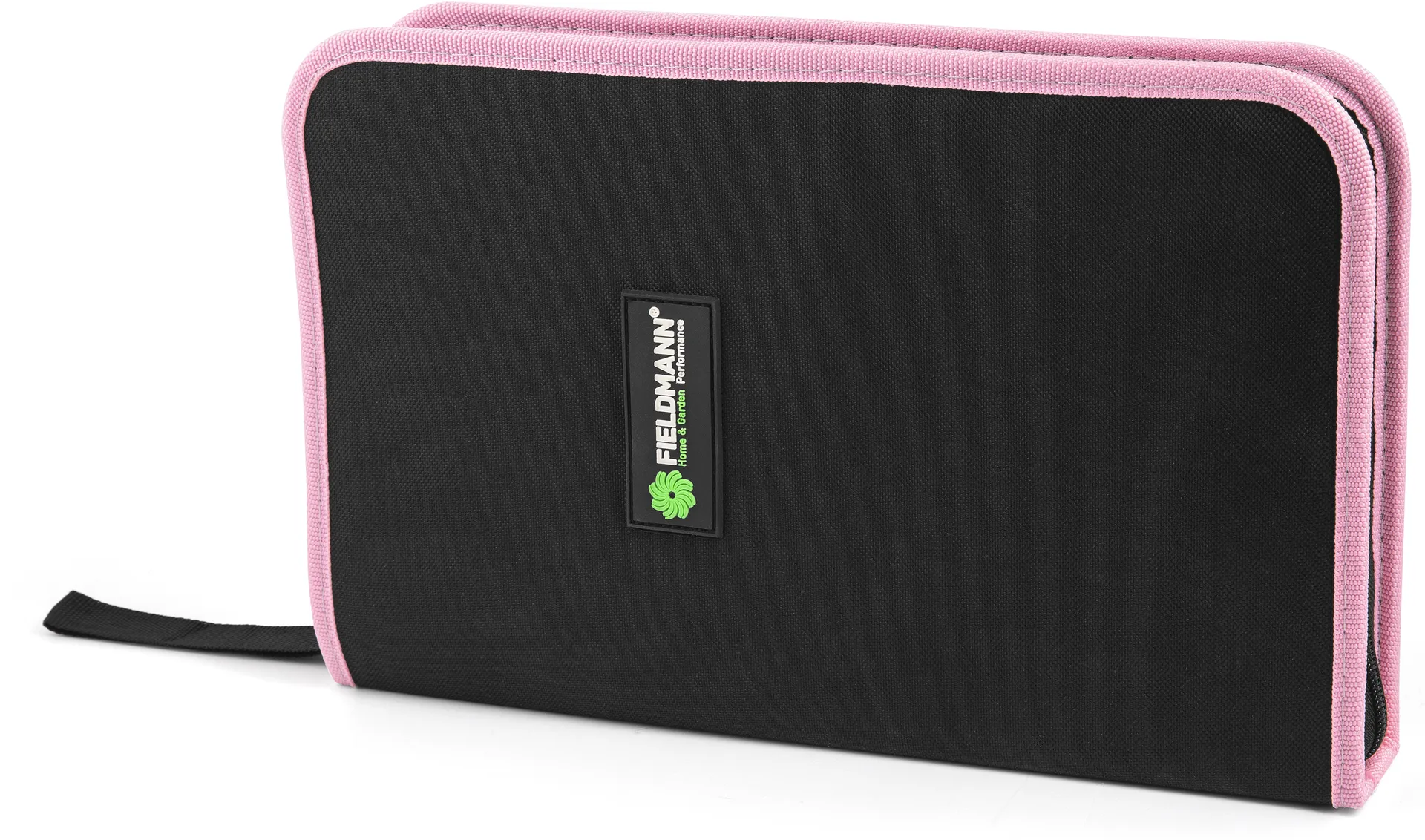 - Stylová růžová brašna FIELDMANN v sobě ukrývá 71 dílnou sadu nářadí, která se bude hodit nejen každé kutilce, ale též každému členu domácnosti nejen v rodinné dílně, ale též na zahradě. Sada obsahuje šroubováky, bity, kladivo, kleště, nožík, svinovací metr,vodováhu a spoustu dalšího vybavení, bez kterého se praktická žena v domácnosti prostě neobejde. Jednotlivé nářadí je vyrobeno z odolného materiálu a opatřeno pohodlnými ergonomické úchopy.