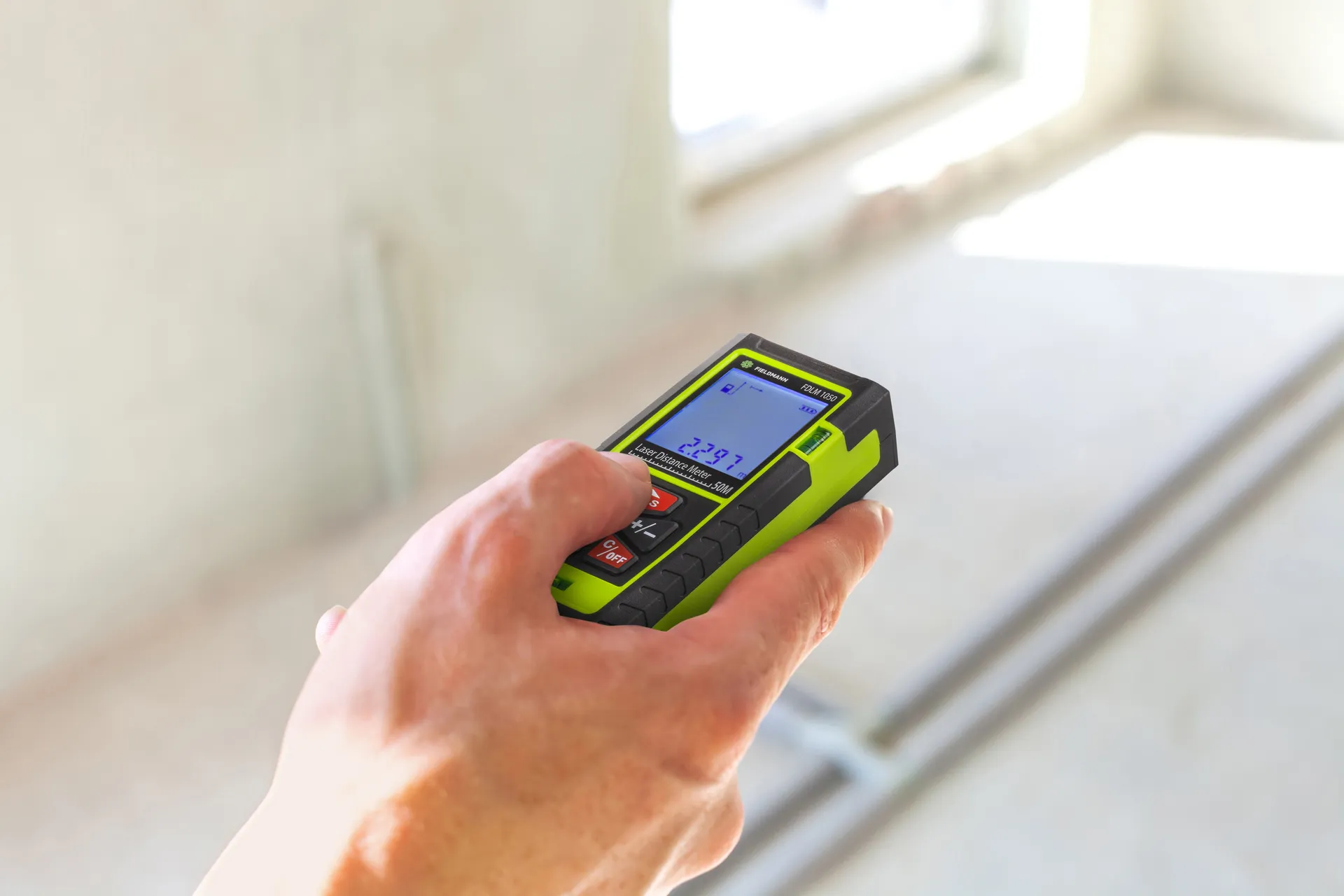 - Měřicí laser do 50m. Laserový měřič vzdálenosti, plochy a objemu je skvělou pomůckou při plánování stavby nebo přestavby v interiéru i exteriéru. Měřič je velice přesný nejen díky zabudované vodováze a lze jej využít k měření vzdáleností od 5 cm až do 50 m. Při měření plochy nebo objemu stačí laser postupně namířit do rohů měřeného objektu podle návodu a schématu přímo v měřiči. Součástí balení jsou 3 x AAA tužkové baterie.