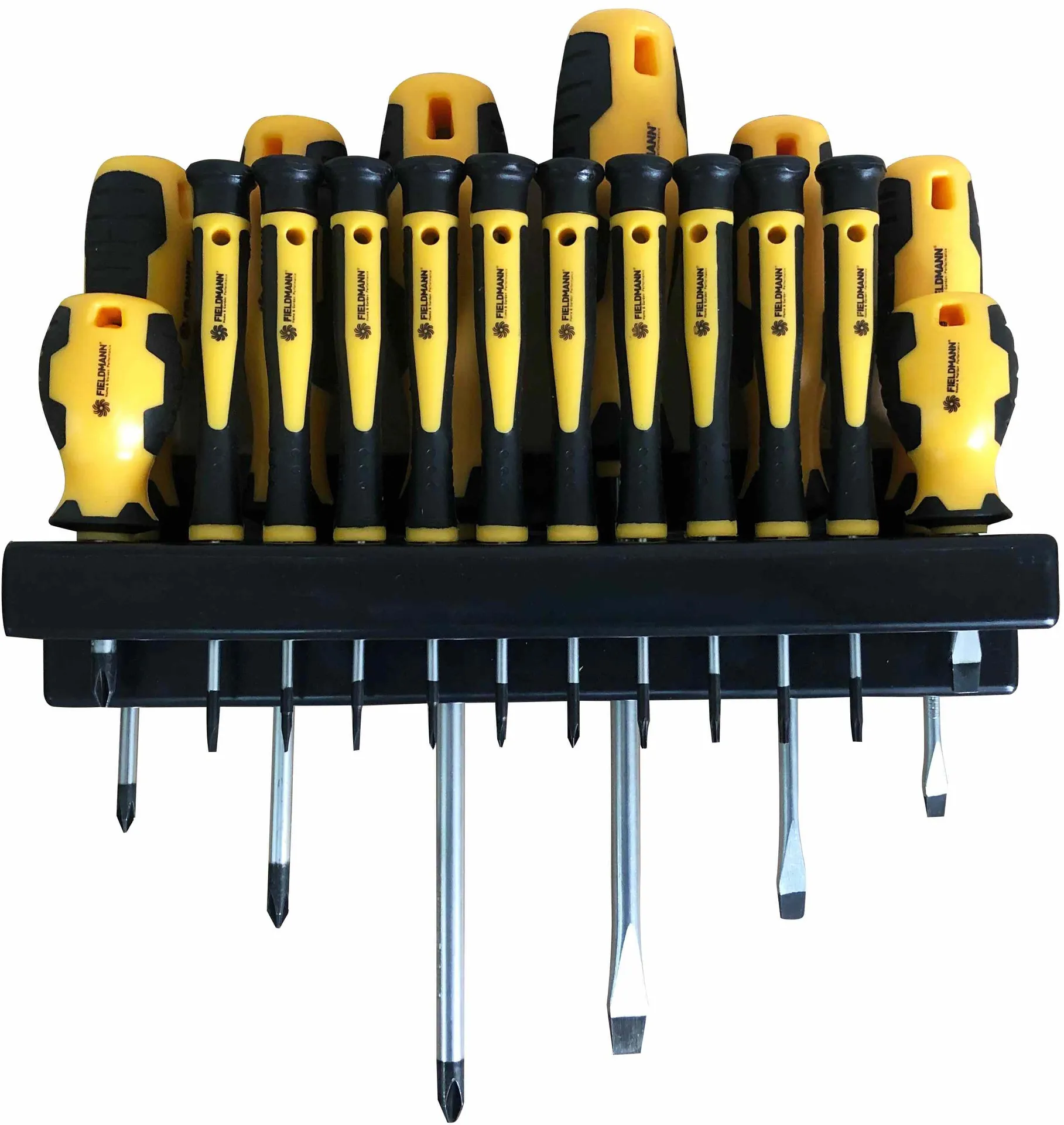 - Šroubováky různých velikostí si najdou své uplatnění v každé domácnosti. Ať už potřebujete povolit malý šroubek třeba na hračce pro děti nebo smontovat skříň. Tento set 18 kusů šroubováků vám s tím rozhodně skvěle pomůže. Sada FIELDMANN FDS 5007-18R obsahuje ploché i křížové šroubováky v různých velikostech, takže si můžete vybrat to správné náčiní pro jakoukoliv práci. Šroubováky mají magnetické hroty a špičky, což je příjemný bonus. Praktický držák upevnitelný na stěnu vám pro změnu pomůže udržet nářadí uklizené a zároveň vždy na dosah ruky.