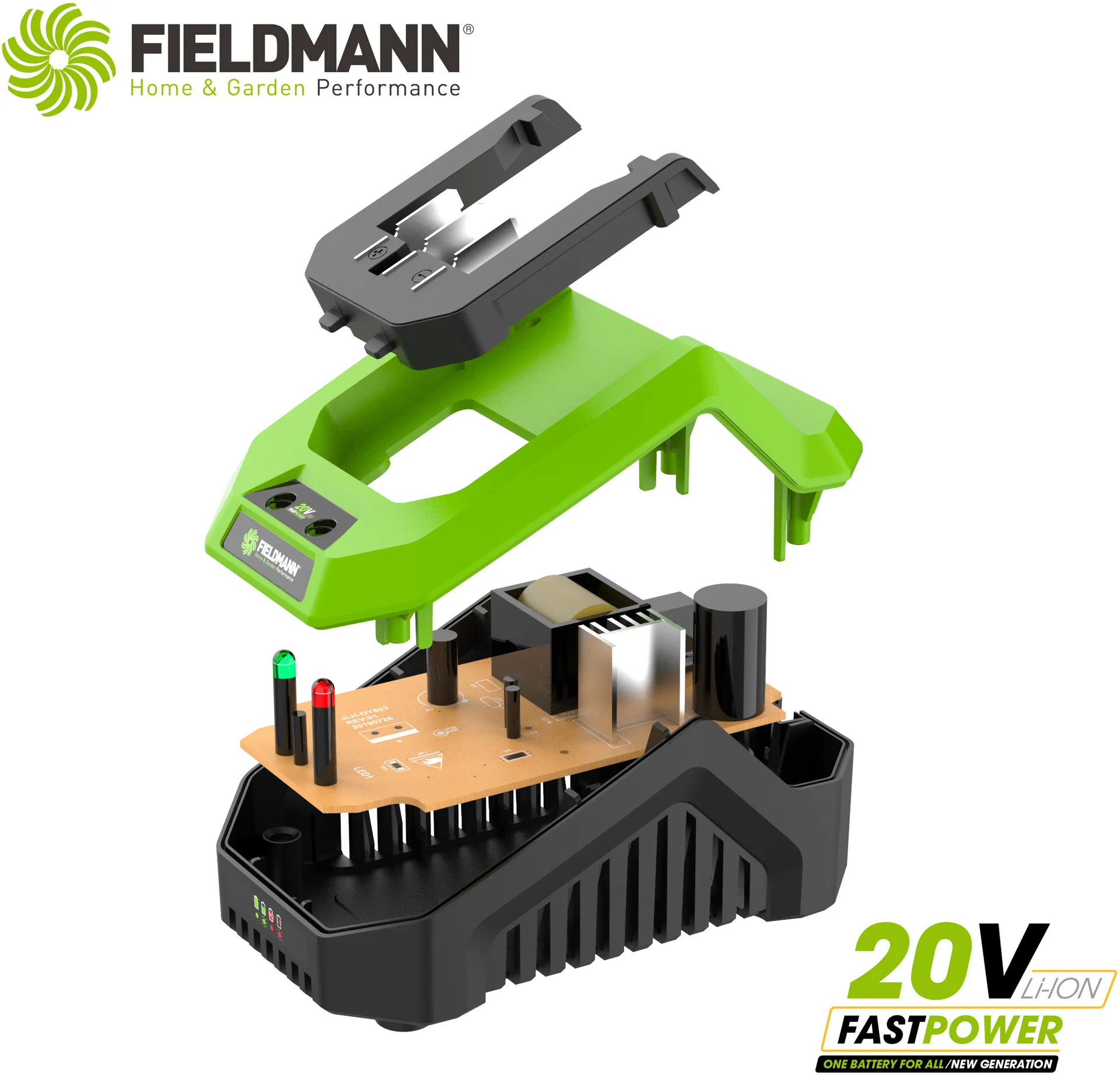 - Li-Ion rychlonabíjecí stanice renomované značky FIELDMANN představuje opravdovou špičku ve své komoditě. Je kompatibilní se všemi stroji z aku řady FAST POWER 20V. Pro tento druh nabíječek je typický elektronický monitoring stavu nabití díky kterému ihned vidíte, zda nabíjení probíhá bez problému díky LED indikátoru. 2 Ah baterii nabijete již za 60 min.
