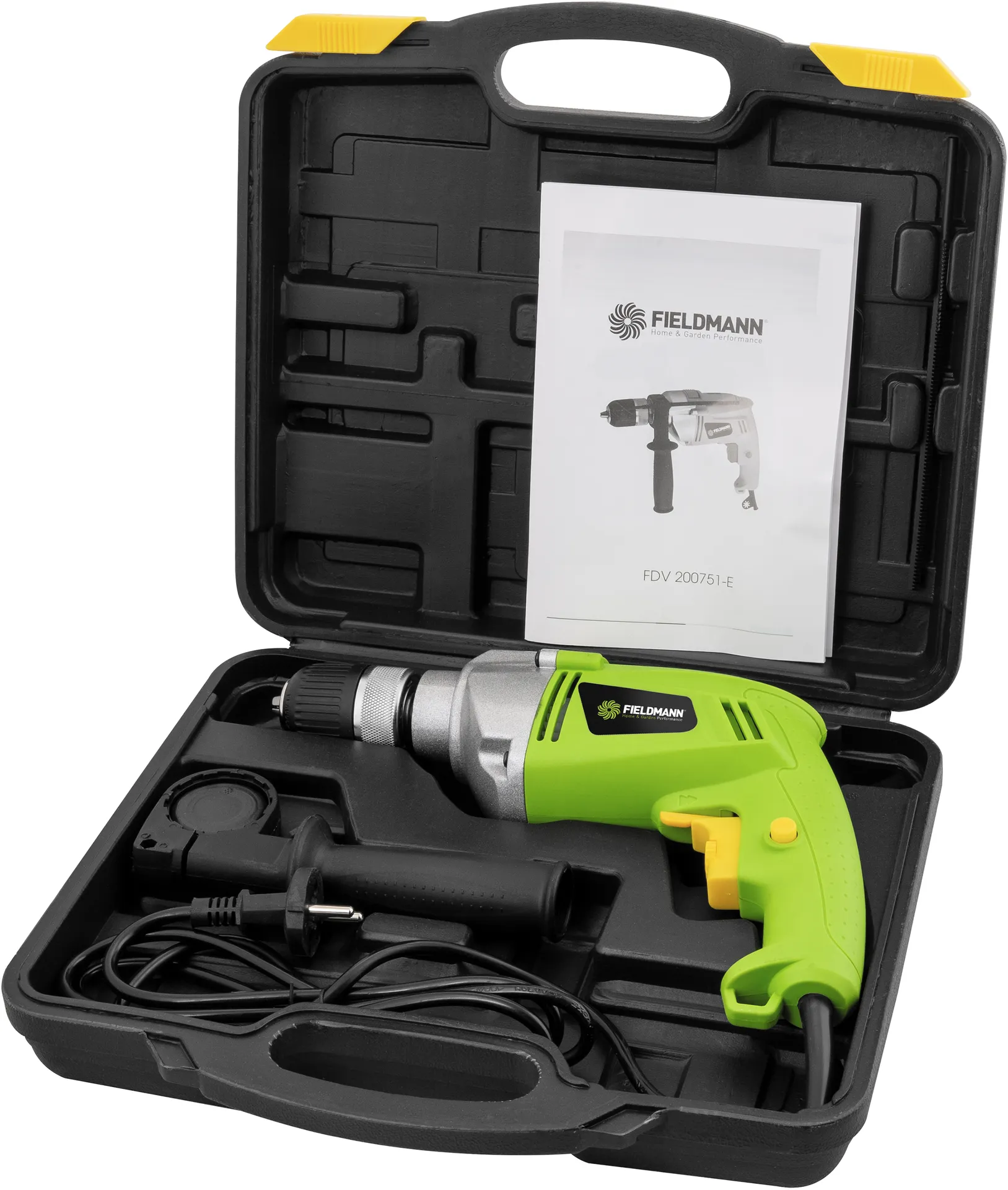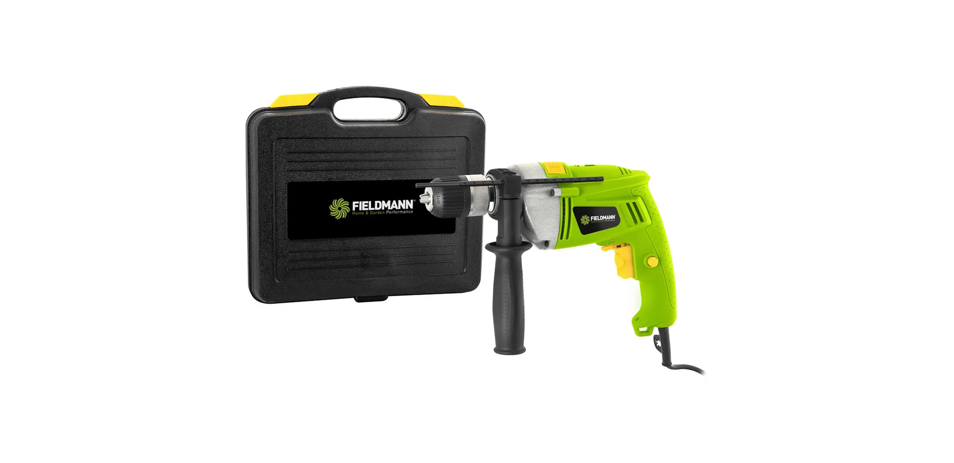 - Příklepová vrtačka FIELDMANN je špičkový stroj za rozumnou cenu, který by neměl chybět ve výbavě žádného kutila nebo profíka. Zaujme především svým precizním zpracováním, které oproti konkurenci má vodováhu jako součást stroje, která v kombinaci s ergonomickou rukojetí a přídavným madlem zajišťuje vynikající ovladatelnost a skvělý komfort i při dlouhém a precizním vrtání.