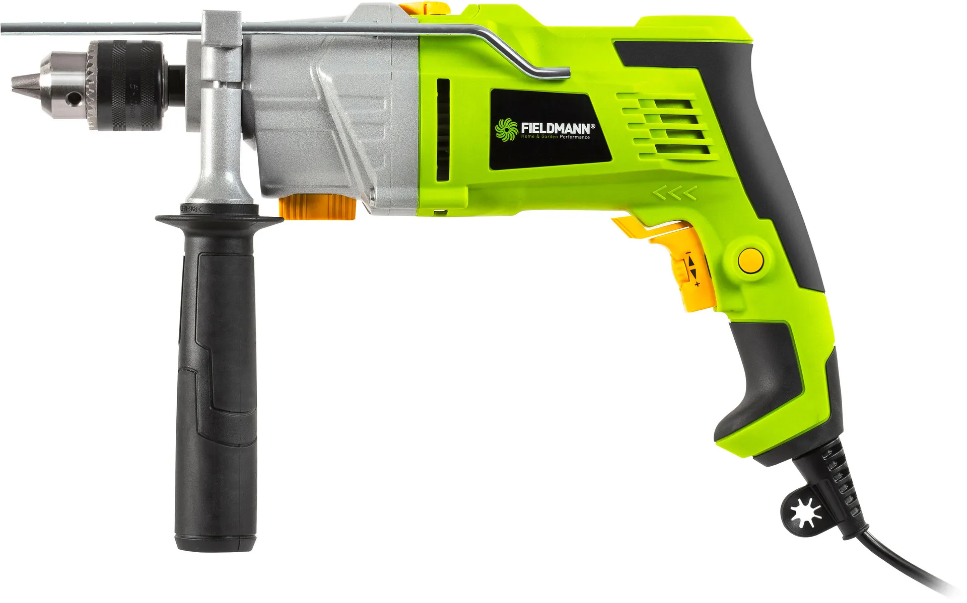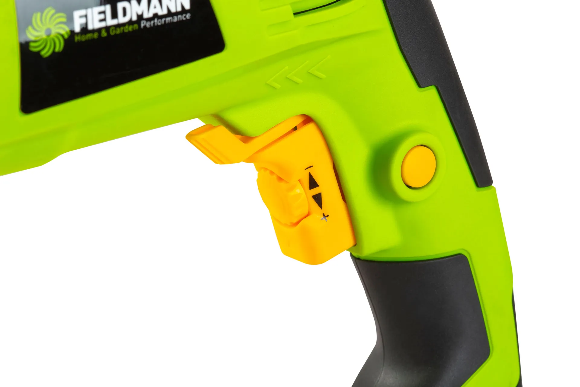 - Příklepová vrtačka FIELDMANN je prémiový stroj, který by neměl chybět ve výbavě žádného kutila an profesionála. Zaujme především svým precizním zpracováním, které oproti konkurenci nabídne výkon 1 200 W ve spojení s kovovým sklíčidlem do průměru 13 mm spolu s možností nastavení rychlosti otáček přímo na spínači. V kombinaci s ergonomickou rukojetí a přídavným madlem zajišťuje vynikající ovladatelnost a skvělý komfort i při dlouhém a precizním vrtání.