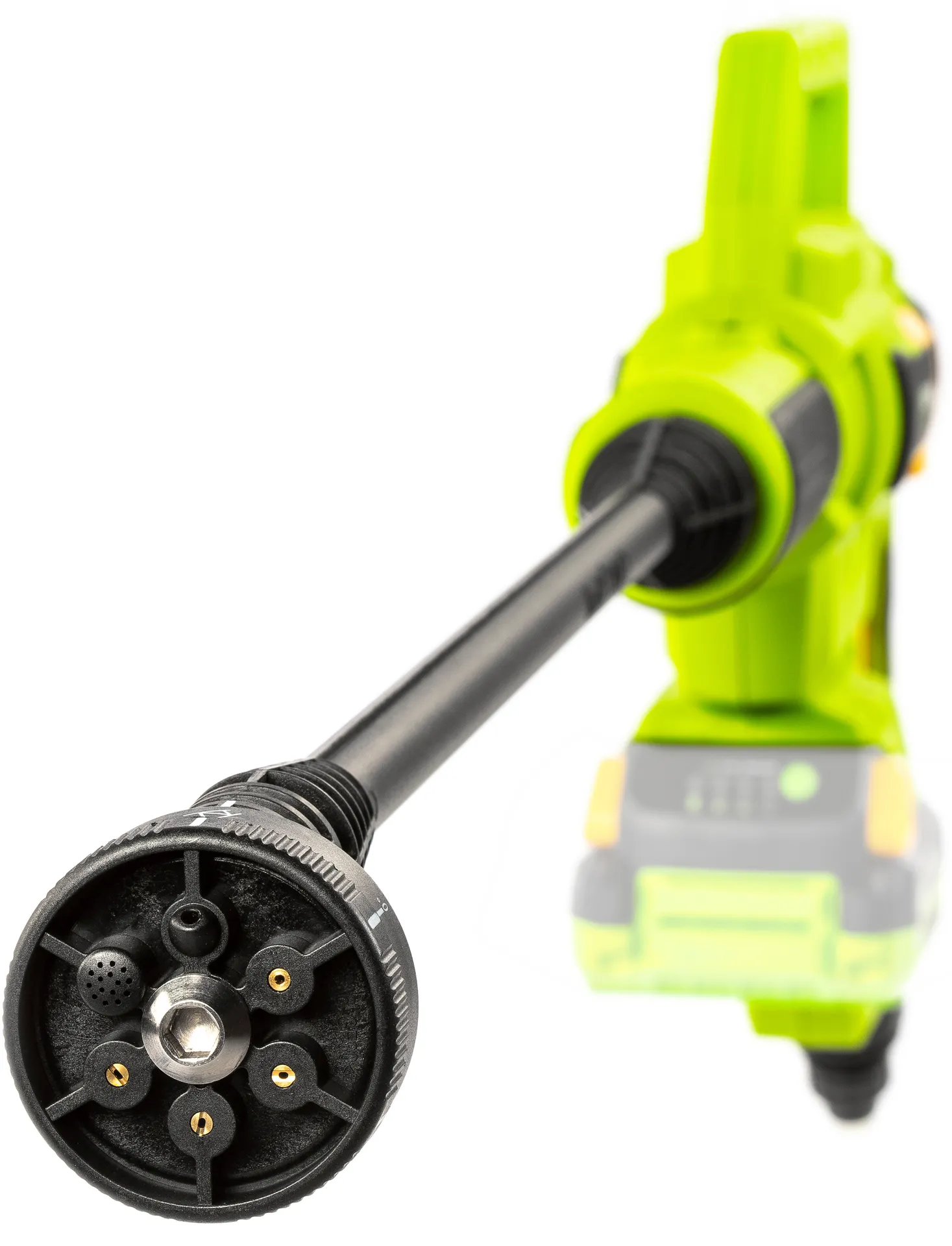- Samonasávací akumulátorová tlaková myčka, akumulátor 20 V / 2 Ah (není součástí).