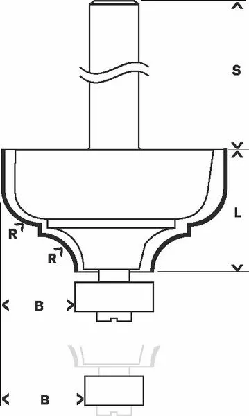 - Fréza na tvorbu hran C, 8 mm, R1 4,8 mm, B 9,5 mm, L 14 mm, G 57 mm