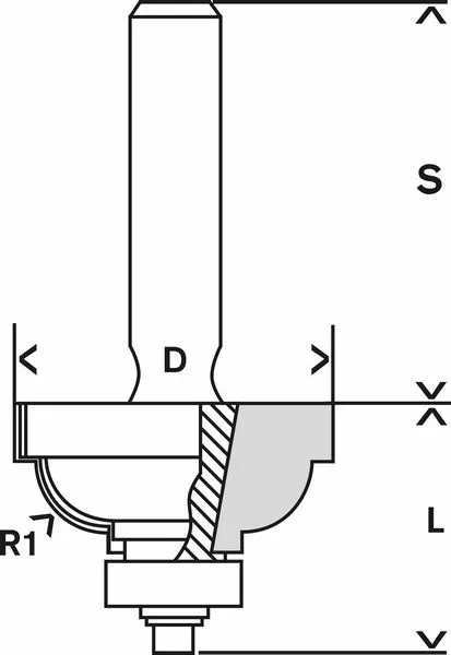 - Fréza na tvorbu hran E, 8 mm, R1 9,5 mm, D 35 mm, L 16.2 mm, G 59 mm