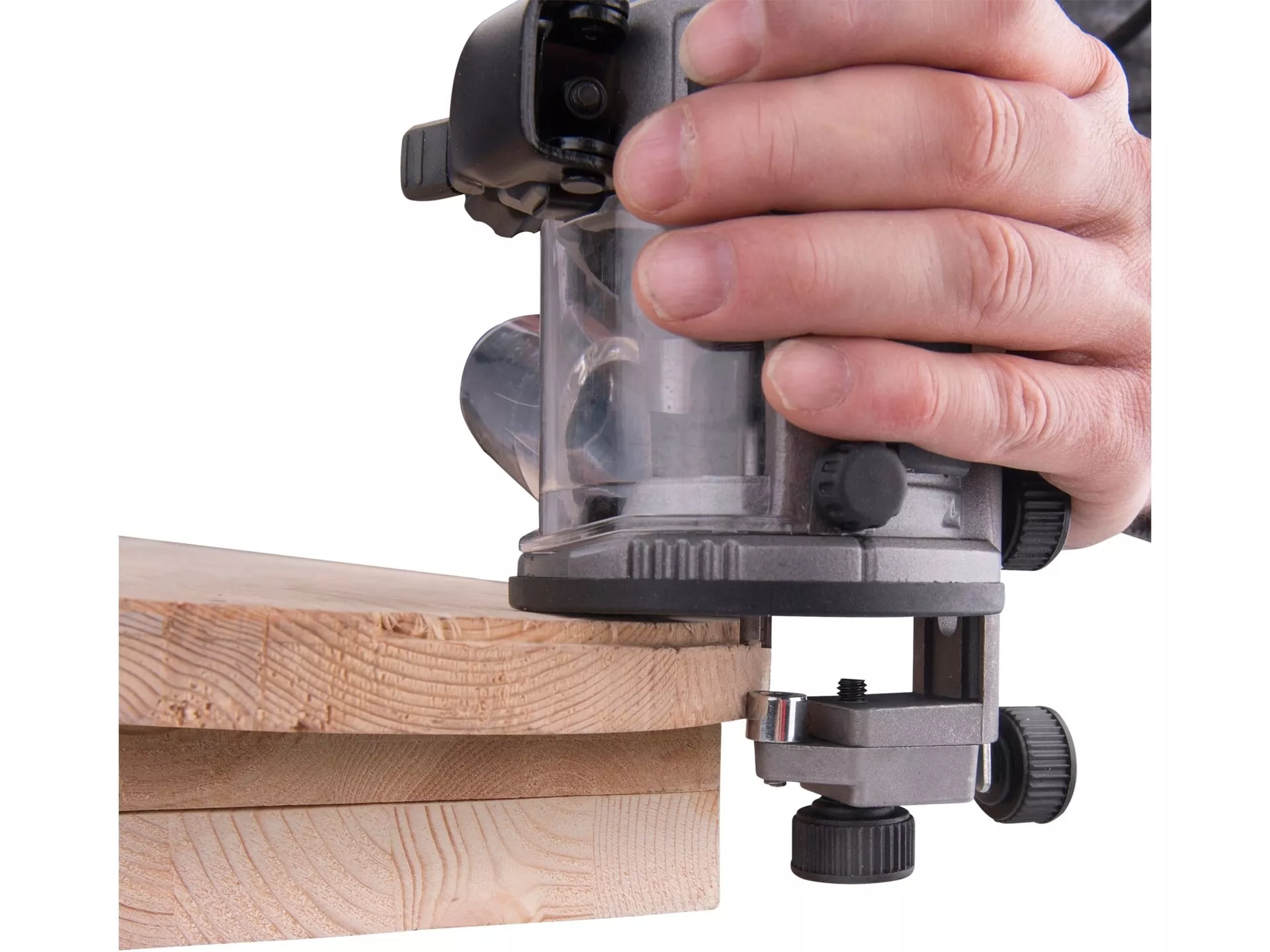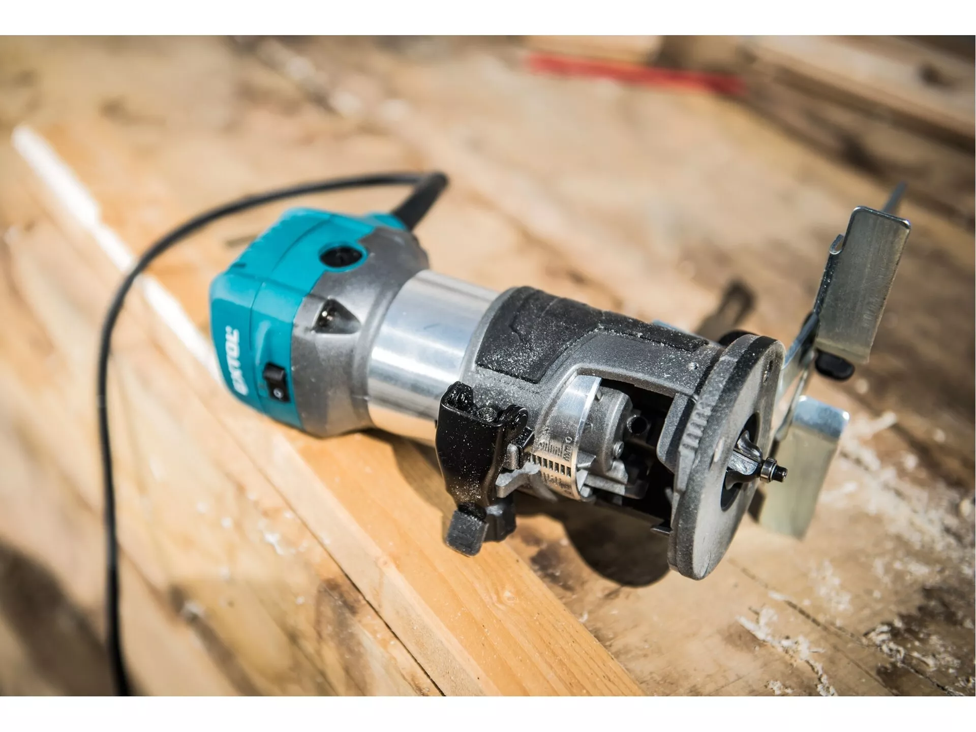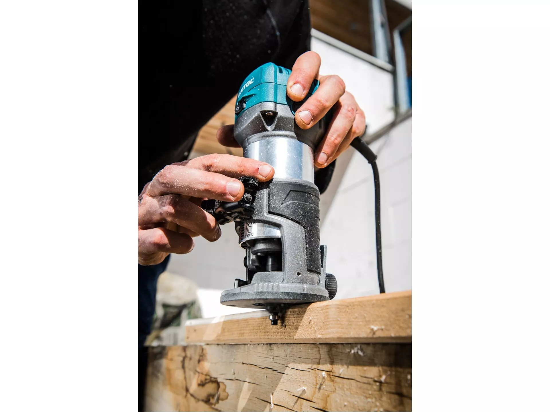 - Frézka je určena k frézování hran, profilů, otvorů do dřeva s různými tvary v závislosti na tvaru použité frézy. Frézka může pracovat s frézami se stopkou 6 a 8mm. Srdcem frézky je silný 710W motor s regulací otáček v rozsahu 13000-33000/min, který umožňuje přizpůsobit rychlost typu materiálu. Dále je vybavena elektronickou kontrolou otáček, která jí umožňuje mít konstantní otáčky i při zatížení a funkcí "soft start" zajišťující hladký start bez nárazů. Pro přesnou práci je zanořovací základna vybavena hloubkovou zarážkou s možností přesného posunu v řádu desetin milimetru. Při práci s tvrdým dřevem můžete využít revolverovou zarážku pomocí, které si rozdělíte frézovanou hloubku do několika vrstev a postupně je budete odebírat. Balení obsahuje tři různé základny: zanořovací, jednoruční a základnu s rukojetí. Dále lze dokoupit předsazenou základnu vhodnou pro práce u stěn. Frézka lze snadno vyjmout ze základny a vložit do jiné základny v závislosti na prováděné práci. Tato modularita výrazně usnadňuje a zrychluje práci.