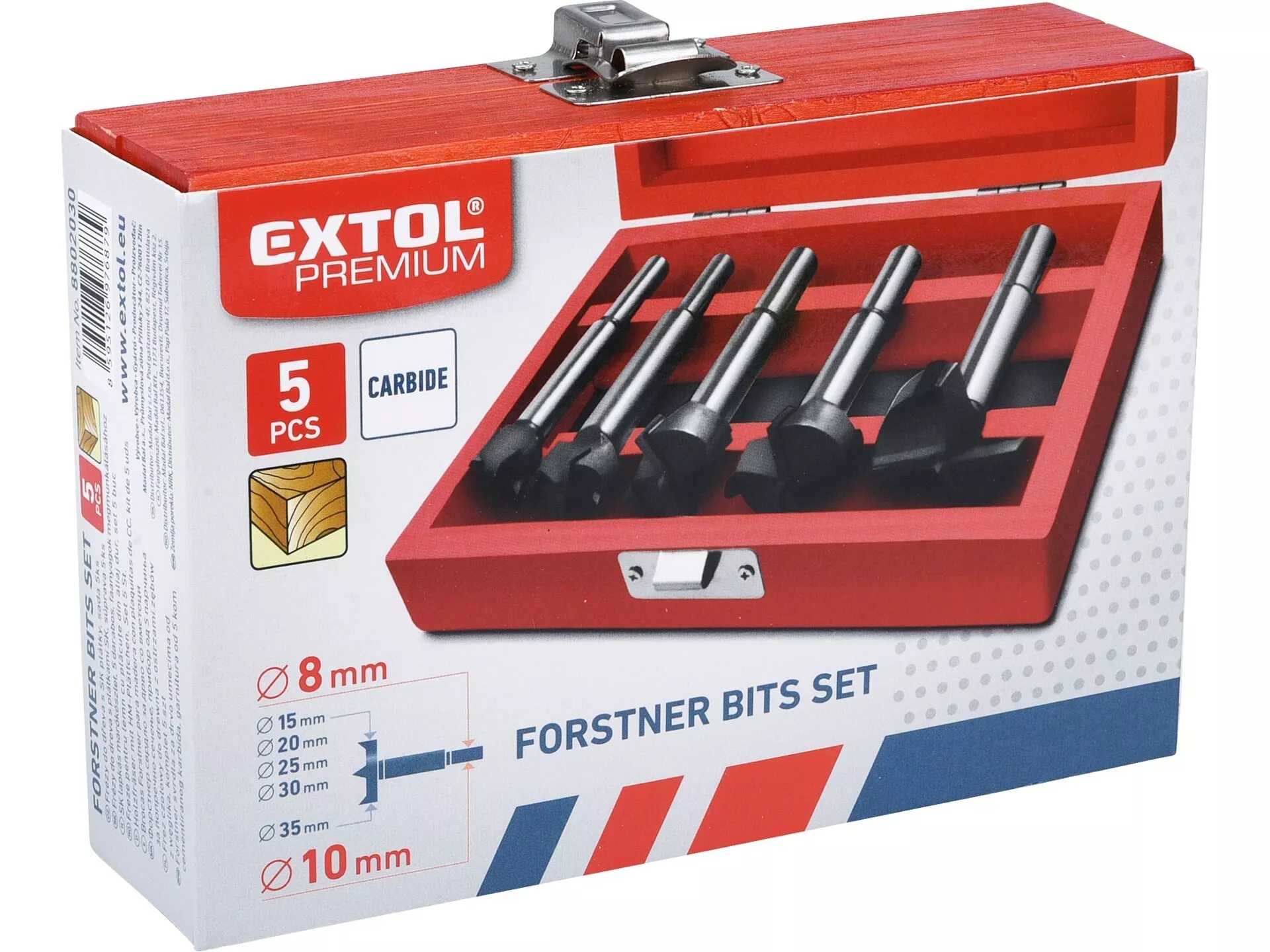 Frézy-sukovníky do dřeva, sada 5ks s sk plátky, o 15-20-25-30-35mm, stopka 8-10mm EXTOL PREMIUM 8802030