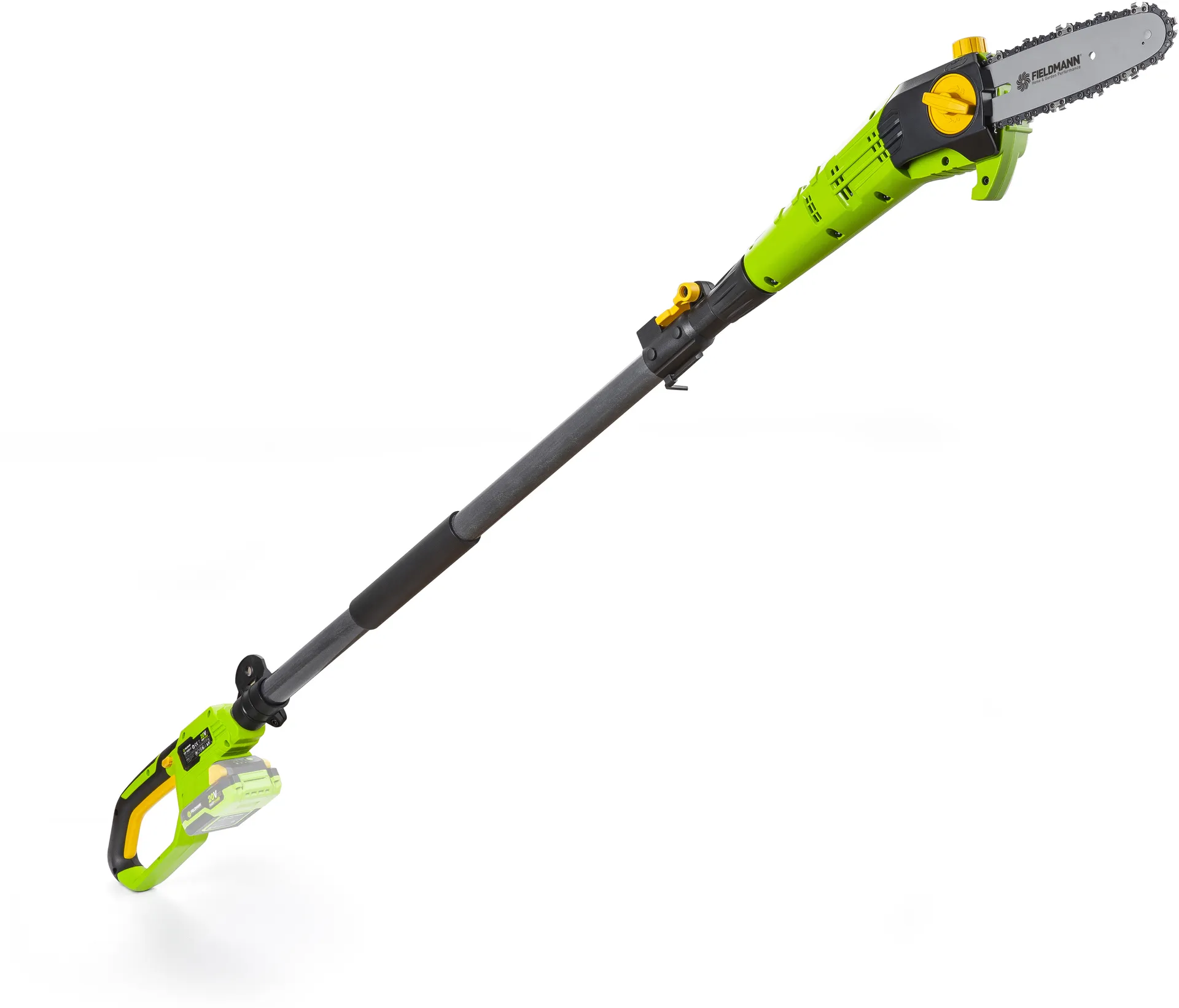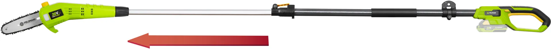 - Akumulátorový prořezávač značky FIELDMANN dosáhne bez problému do výšky, zatímco vy budete bezpečně stát na zemi. Tento prořezávač dosahují dostatečného výkonu díky plnému využití síly 1 x 20V akumulátoru ve spojení s elektronickou řídící jednotkou. O komfortní práci se kromě ergonomického madla a měkčeného úchopu stará též perfektní vyvážení modelu, díky kterému i delší práce na zahradě není problém. Je možno použít akumulátory o kapacitách 2Ah / 4Ah které jsou kompatibilní do všech výrobků společnosti FIELDMANN řady FAST POWER 20V.