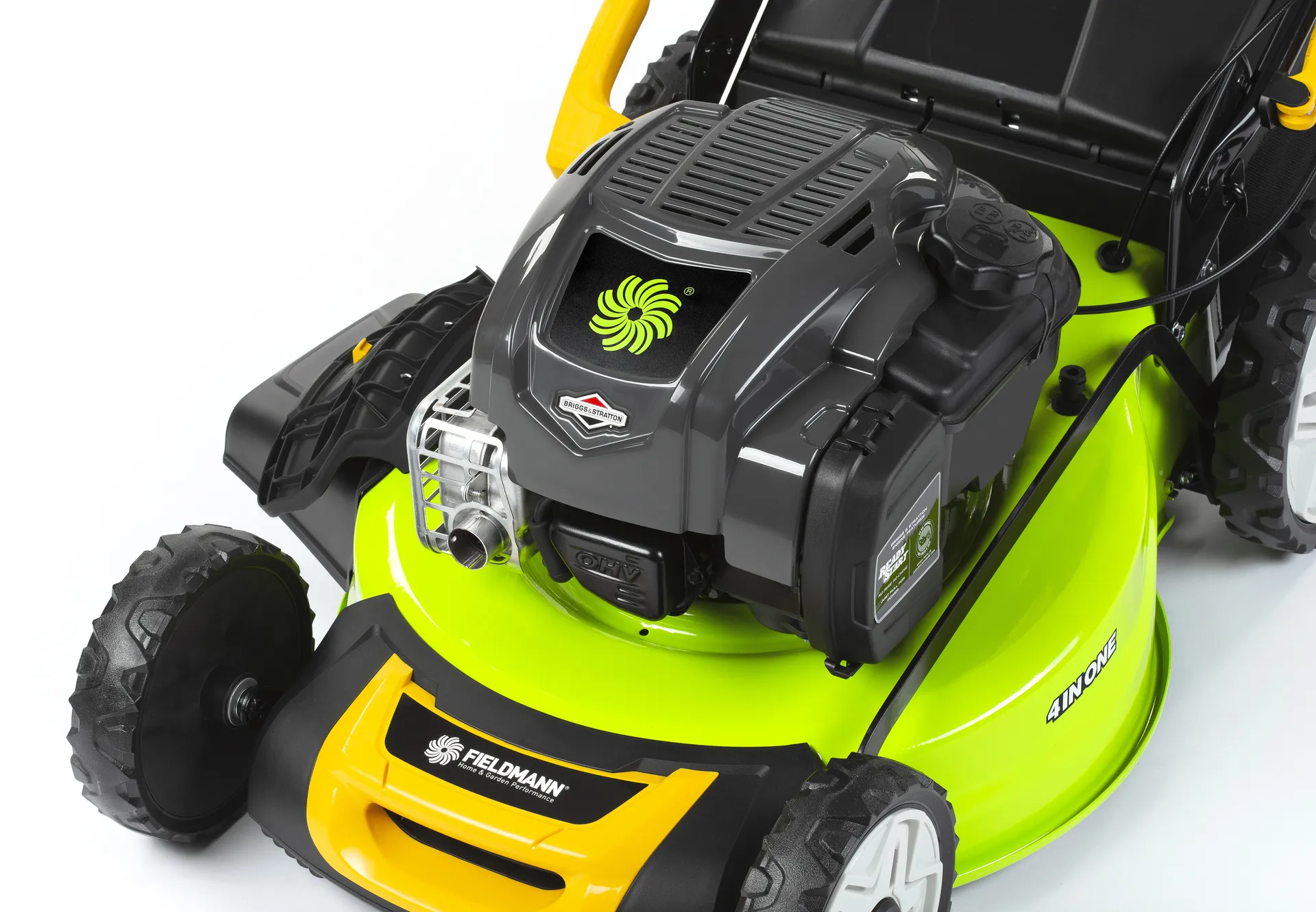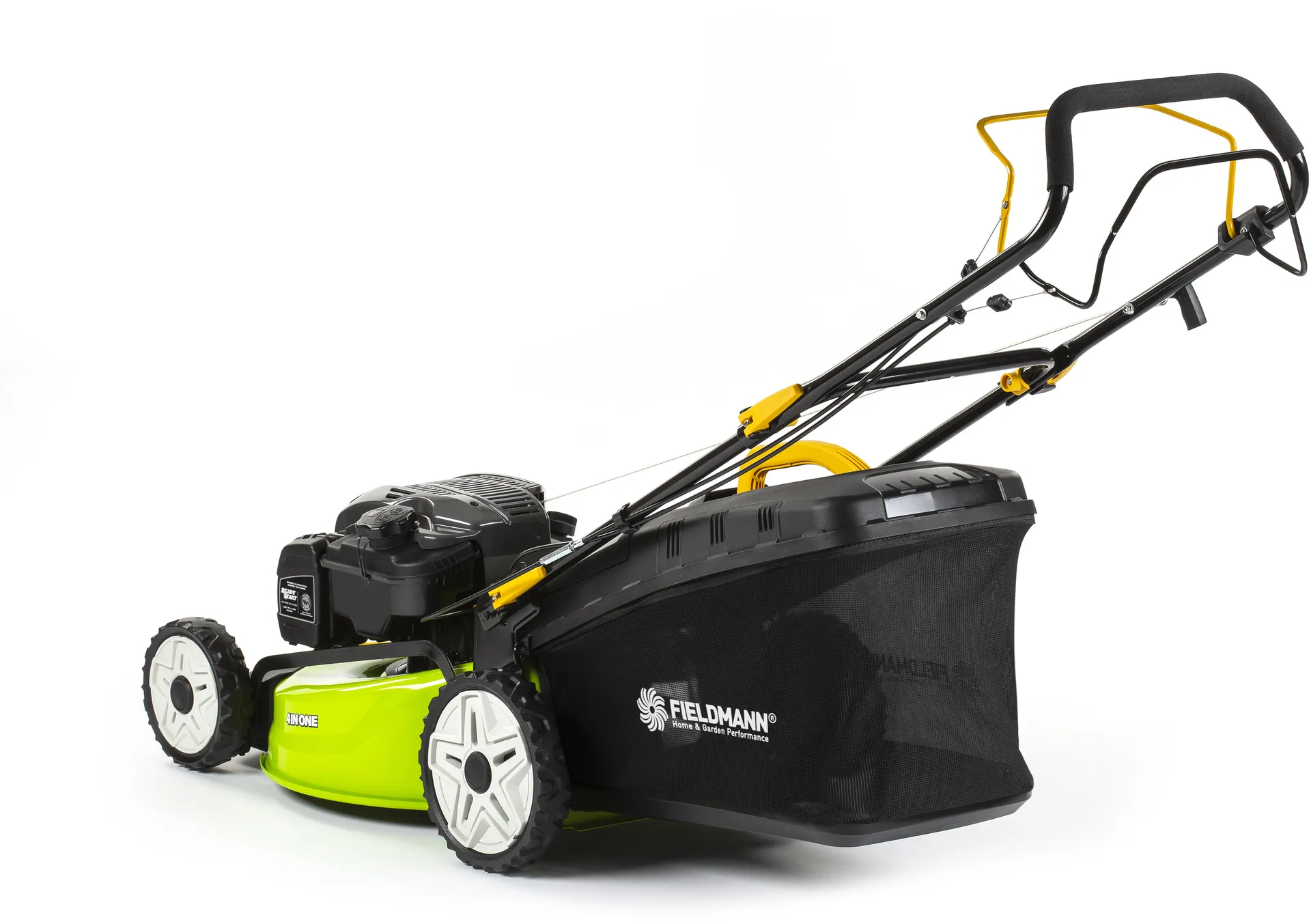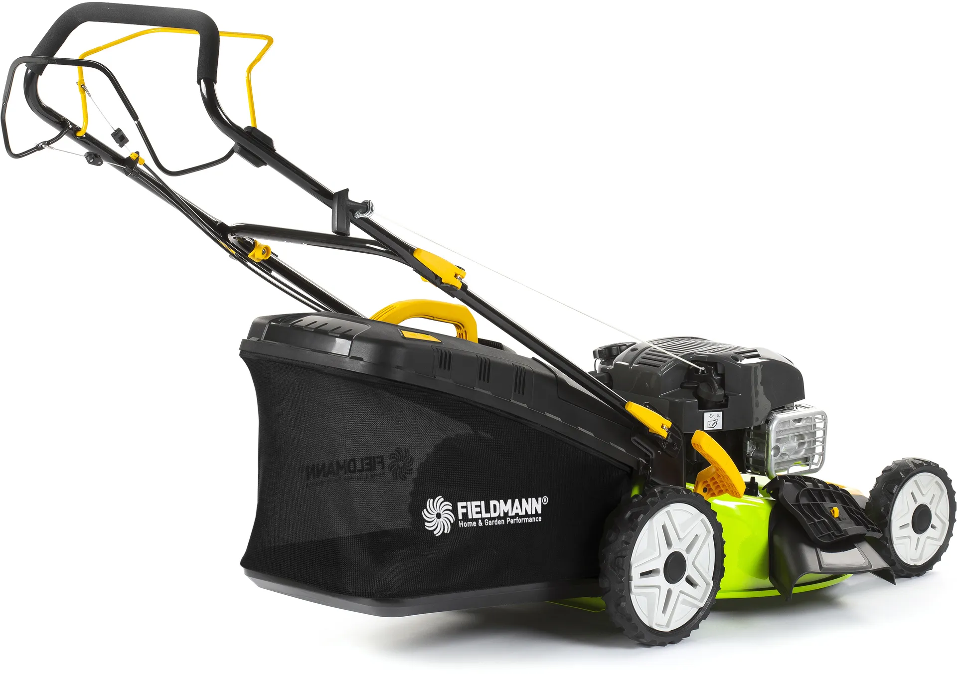 - Benzínová sekačka s pojezdem od české firmy FIELDMANN je skvělou volbou pro trávníky do velikosti 1 800 m². Stroj je poháněn vymakaným čtyřtaktním motorem Briggs & Stratton 675 EXi a šířka záběru je 51 cm. Práce vám tak půjde rychle od ruky. Podle vašich preferencí a potřeb trávníku si můžete pomocí centrální páky nastavit výšku sečení až na 6 různých pozic v rozsahu 30–70 mm. Textilní sběrný koš o obsahu 65 l je vybavený ukazatelem zaplnění a upozorní vás, kdy je zapotřebí nádobu vyprázdnit. To však není jediná možnost, jak naložit s posekanou trávou. Díky nastavení 4v1 si můžete vybrat, zda chcete využít sběrného koše, použijete boční nebo zadní odhoz či zvolíte variantu mulčování. Kvůli solidnímu ocelovému šasi je celková váha 33 kg. Díky funkci pojezdu a kvalitním kolečkům s ložisky si toho ani nevšimnete. Uživatelský komfort je ještě zvýšen polohovatelným madlem s měkčeným potahem.