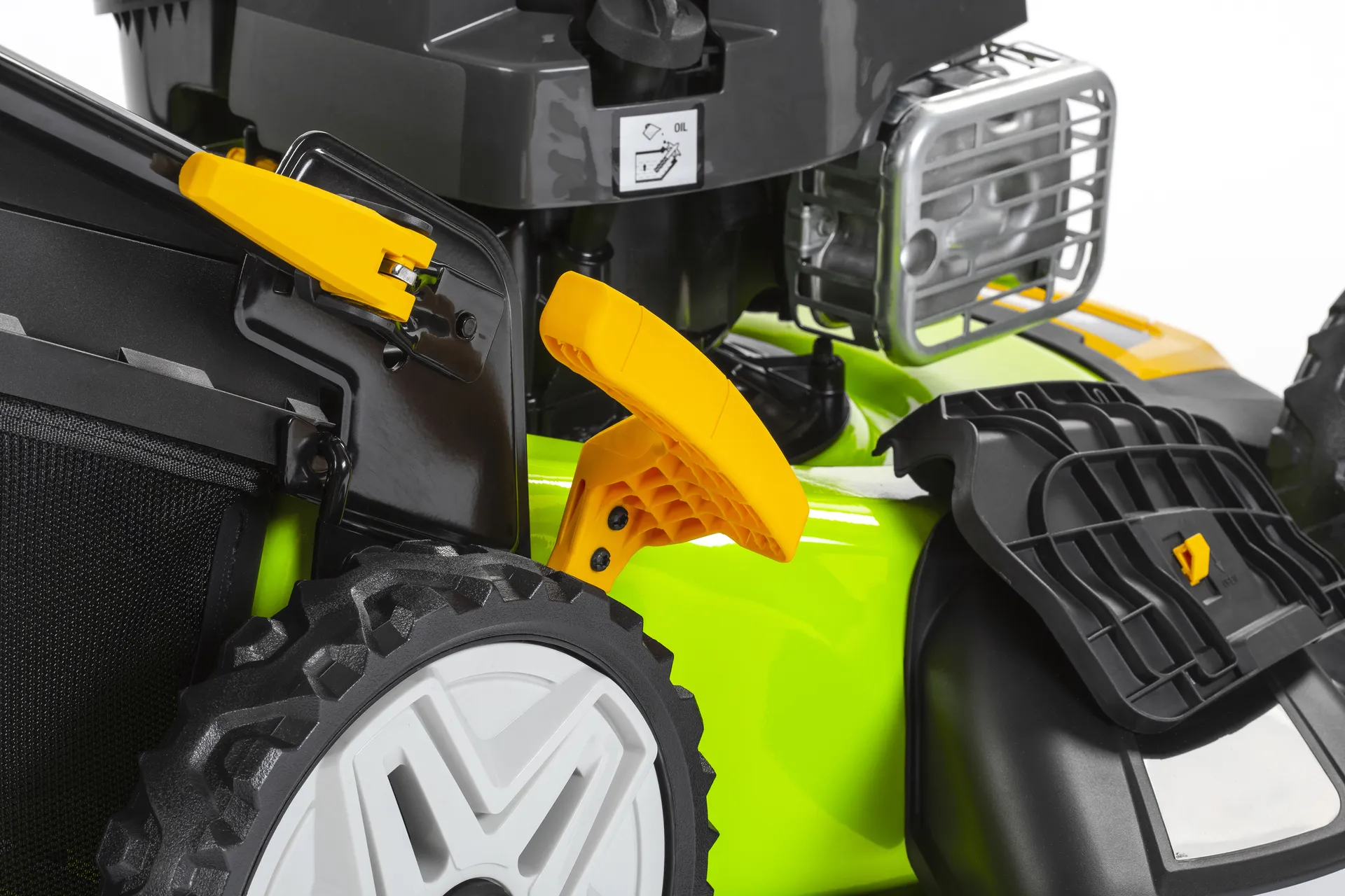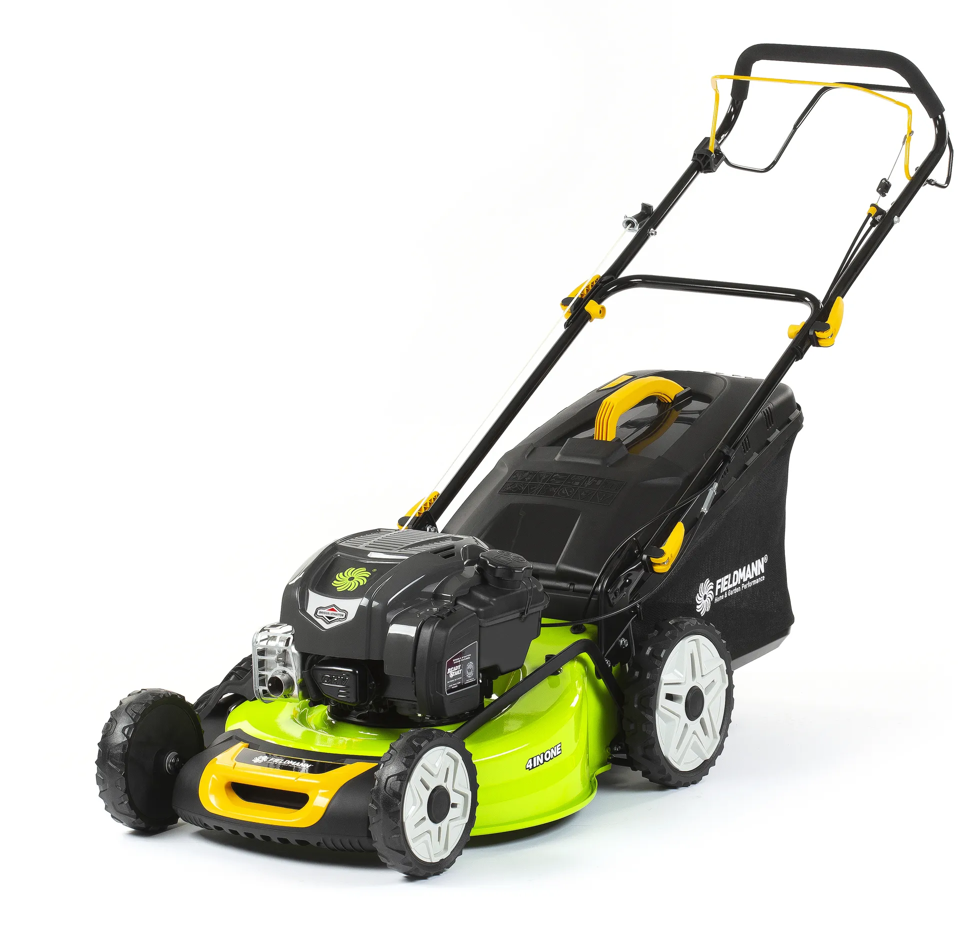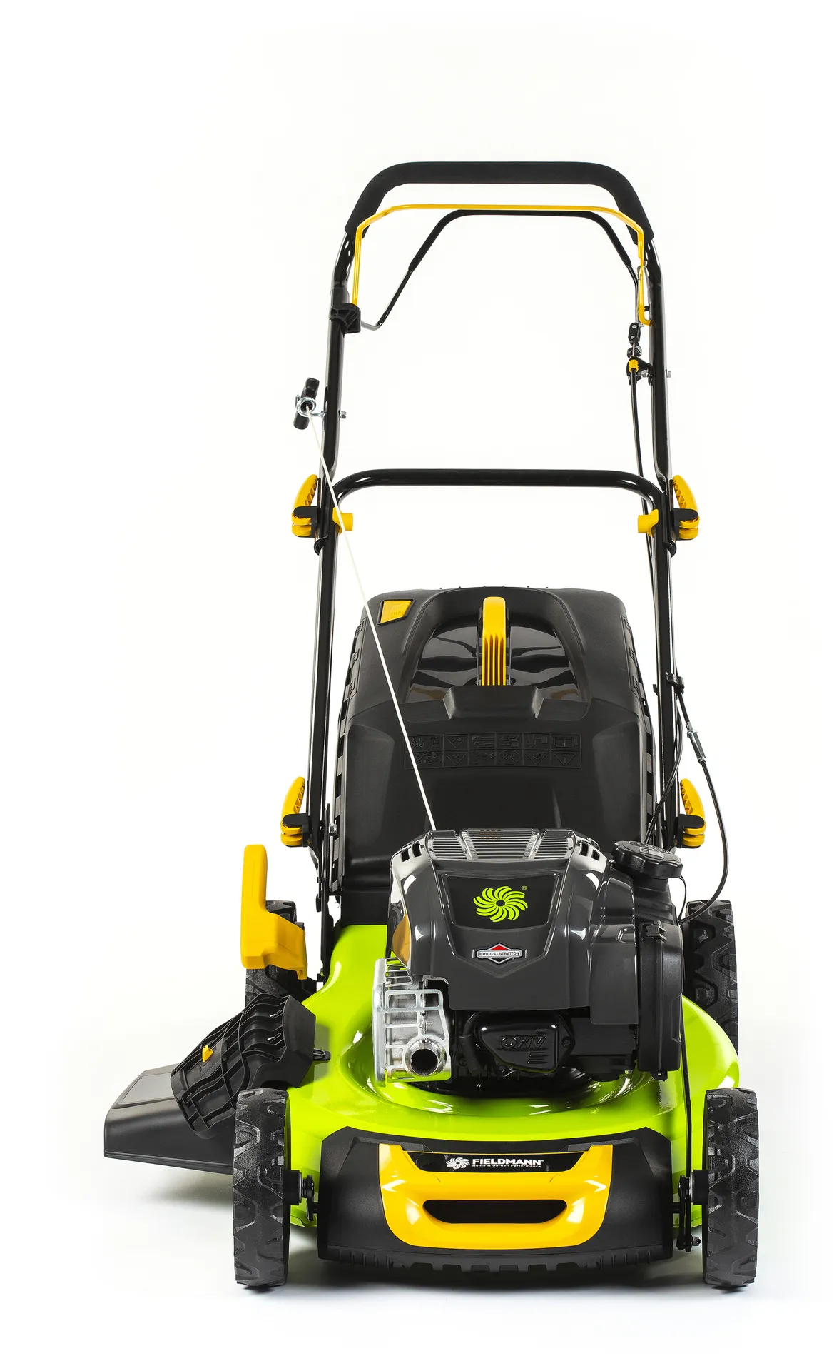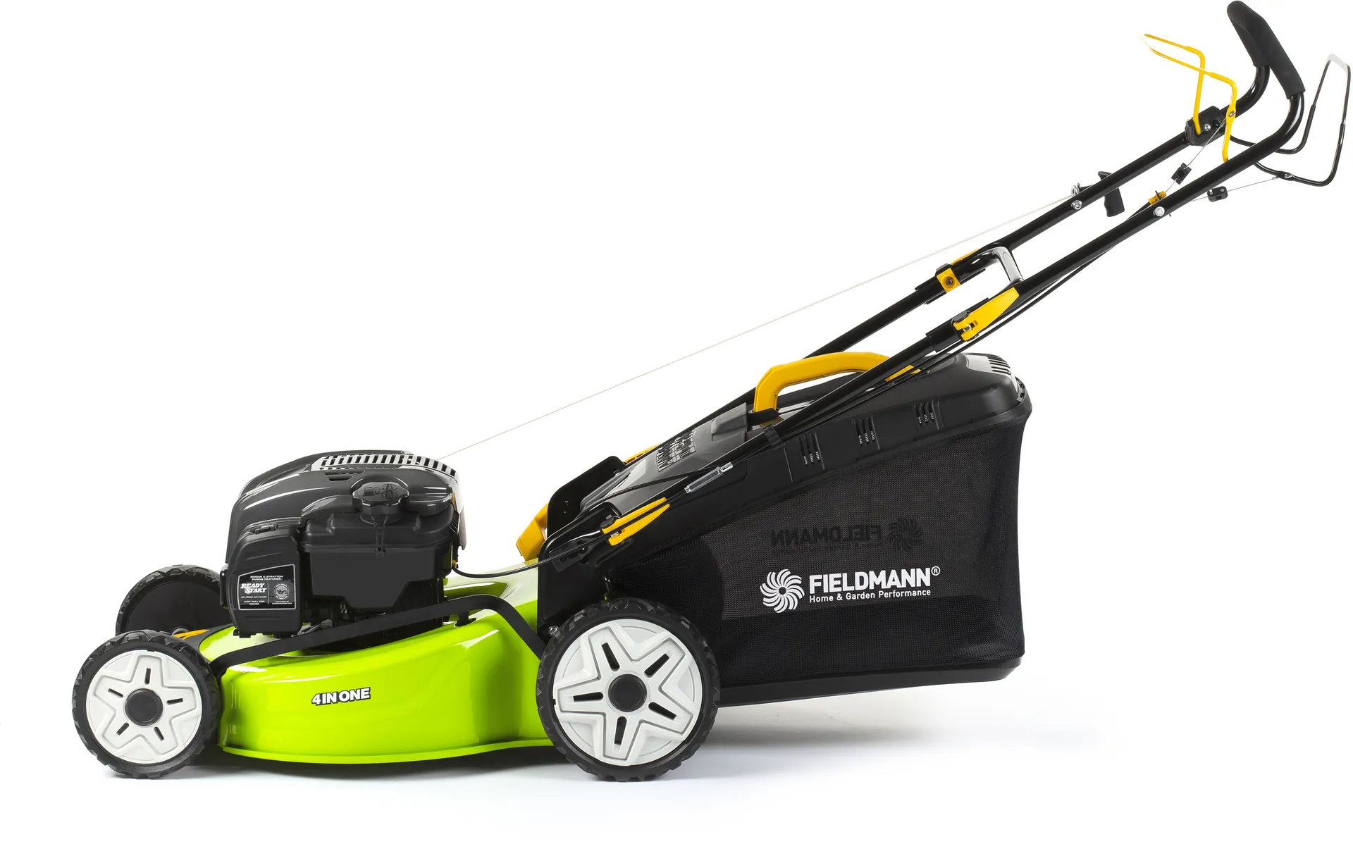 - Benzínová sekačka s pojezdem od české firmy FIELDMANN je skvělou volbou pro trávníky do velikosti 1 800 m². Stroj je poháněn vymakaným čtyřtaktním motorem Briggs & Stratton 675 EXi a šířka záběru je 51 cm. Práce vám tak půjde rychle od ruky. Podle vašich preferencí a potřeb trávníku si můžete pomocí centrální páky nastavit výšku sečení až na 6 různých pozic v rozsahu 30–70 mm. Textilní sběrný koš o obsahu 65 l je vybavený ukazatelem zaplnění a upozorní vás, kdy je zapotřebí nádobu vyprázdnit. To však není jediná možnost, jak naložit s posekanou trávou. Díky nastavení 4v1 si můžete vybrat, zda chcete využít sběrného koše, použijete boční nebo zadní odhoz či zvolíte variantu mulčování. Kvůli solidnímu ocelovému šasi je celková váha 33 kg. Díky funkci pojezdu a kvalitním kolečkům s ložisky si toho ani nevšimnete. Uživatelský komfort je ještě zvýšen polohovatelným madlem s měkčeným potahem.
