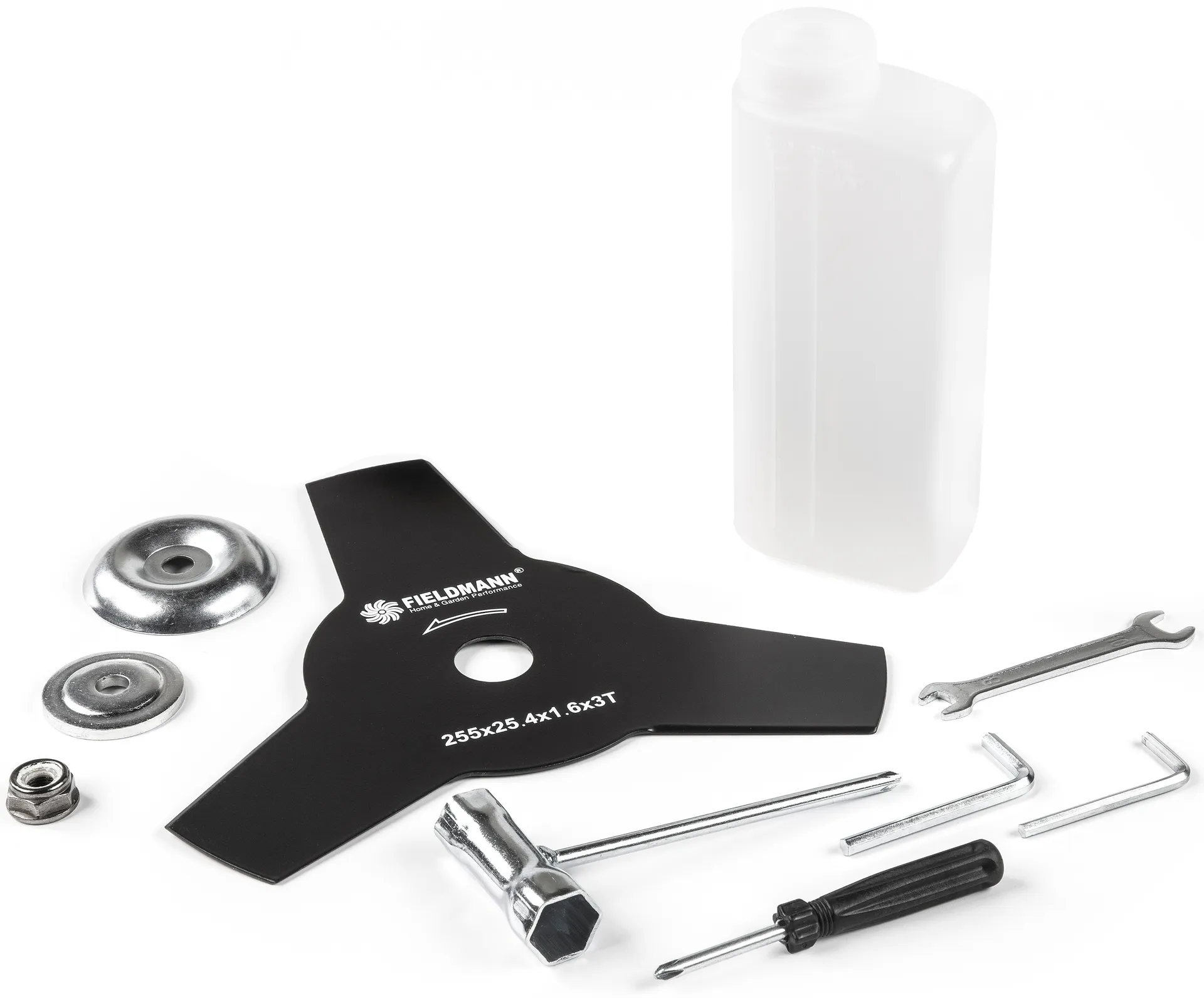 - Balení obsahuje: křovinořez, strunovou vyžínací hlavu se strunou, ocelový 3-zubý kotouč, ramenní popruh, návod k použití