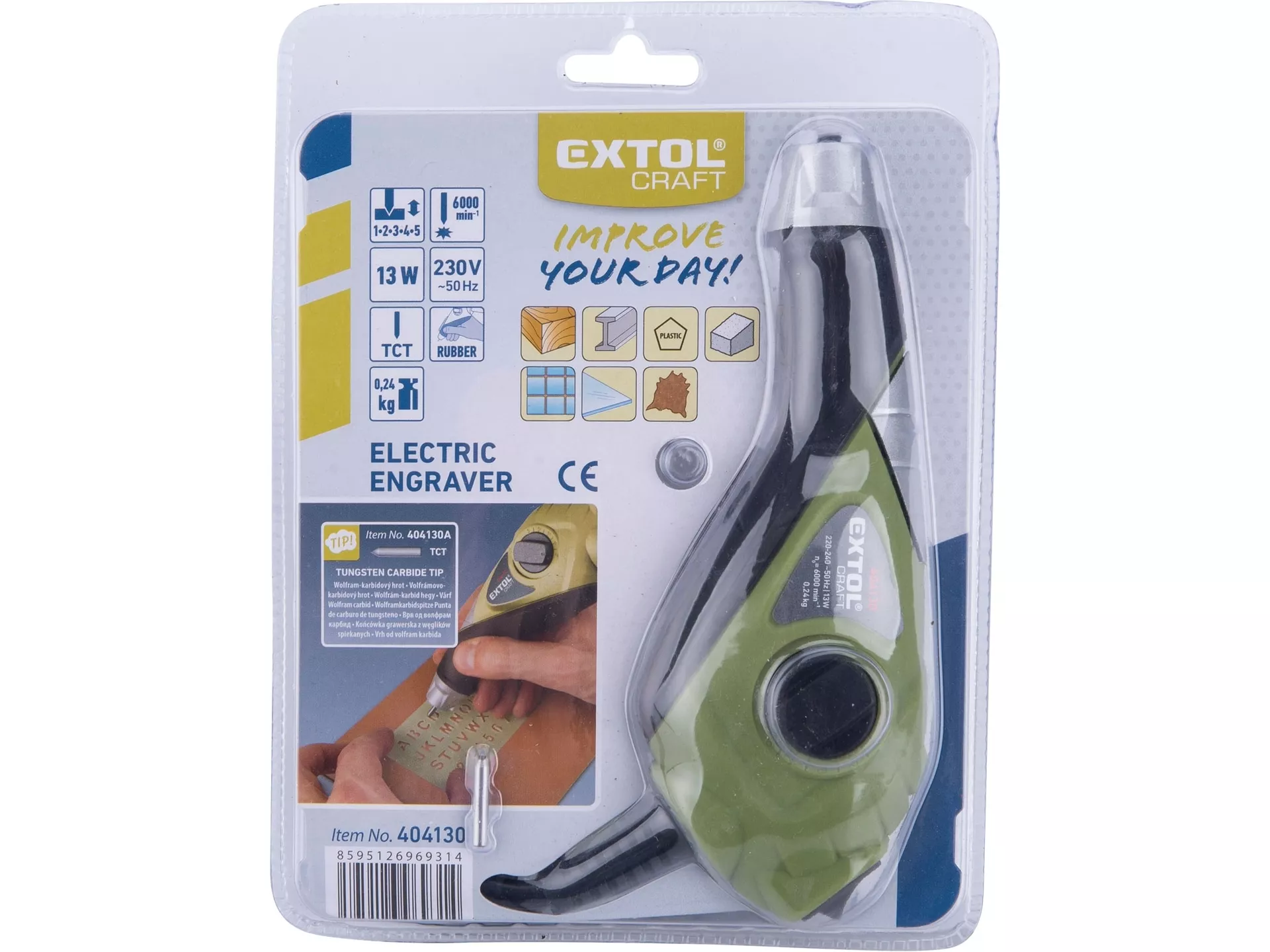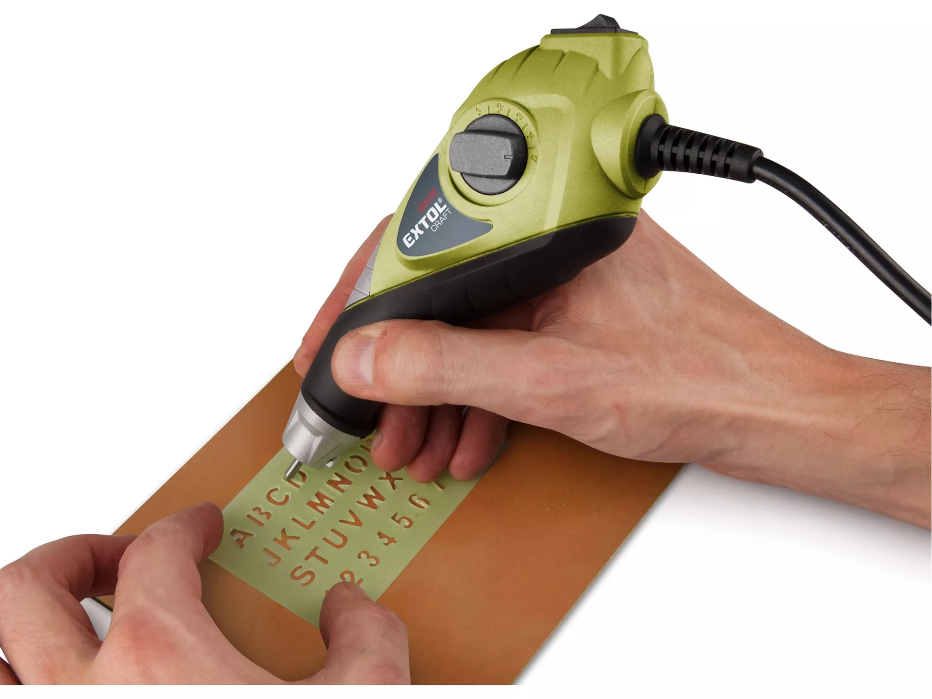- Info: kadence úderů 6000/min, gravírovací hrot - karbid wolframu, pro materiály do tvrdosti 58 HRC (dřevo, sklo, plast, měkké kovy, ocel atd.), el. regulace hloubky - ano