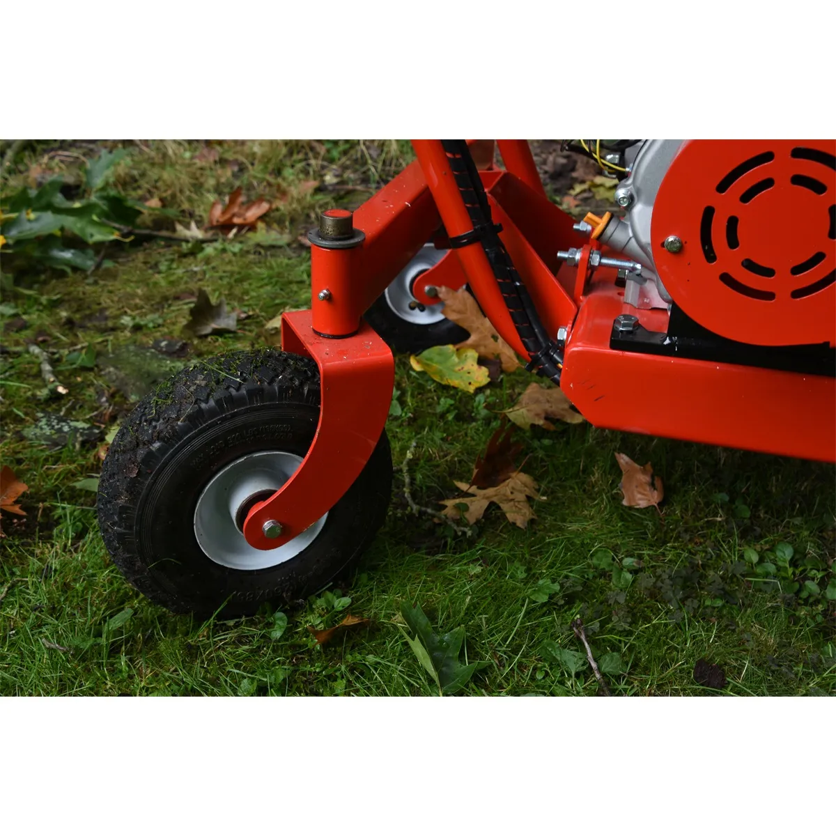 - Pokud potřebujete drtič často převážet na různá místa, s drtičem GTS 1300 WDG s elektrickým pohonem si můžete ušetřit spoustu námahy. To ocení hlavně profesionálové z komunálních služeb, rizikového kácení stromů nebo třeba z údržby sadů, parků a zahrad. Pojezd je napájen baterií (2 x 12 V), která umožní stroji ujet na jedno nabití vzdálenost až 6 km na pevném a rovném povrchu nebo 2 km v měkkém či kopcovitém terénu. Pojezd se ovládá plynule („motocyklová“ rukojeť). Maximální rychlost vpřed je cca 6 km/h a vzad 3 km/h. Řízení pomocí otočných kol je velmi snadné. Jelikož stroj zvládne svahy o sklonu až 15° není pro něj problém ani vyjet na korbu dodávky nebo přívěsu. Stroj si zachovává šířku pouhých 73 cm, takže projede všemi běžnými zahradními vrátky. Drtič GTS 1300 WDG si zachovává veškeré přednosti i technické řešení ostatních benzínových sourozenců, které je odlišují od své konkurence jak kvalitou, tak i rychlostí a snadností drcení dřevní hmoty. Základem je opět kovový buben se dvěma noži ze speciální oceli, které jsou otočné a dají se brousit. Drcené větve o průměru až 10 cm jsou pak sami natahovány do násypky a lehce a rychle rozdrceny. Výhozový tunel je otočný a má nastavitelný deflektor, takže snadno nastavíte proud dřevních štěpek tam, kam potřebujete.