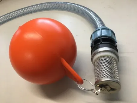 - Sací hadice s plovoucím sáním pro sání vody těsně pod hladinou bez nečistot. Průměr hadice 5/4", délka 1m, PE spojka s vnějším závitem 1", sací koš bez zpětné klapky.
