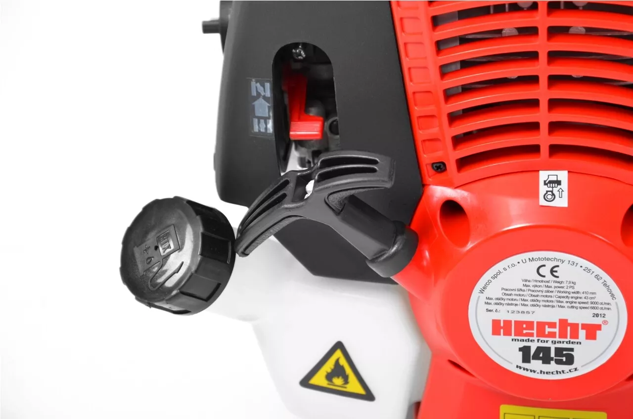 - Benzínový křovinořez HECHT 145 s 2-taktním motorem o obsahu 42,7 cm3 a výkonu 1,1 kW (1,5 HP) je ideální volbou.