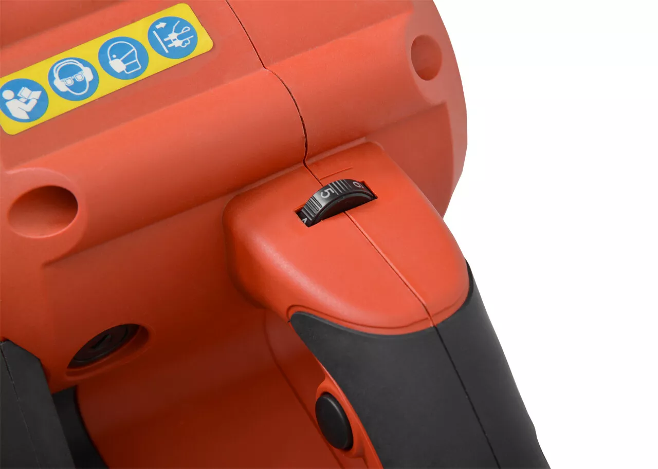 - Podle typu broušeného materiálu je možné snadno nastavit požadované otáčky kolečkem na vrchní části rukojeti.