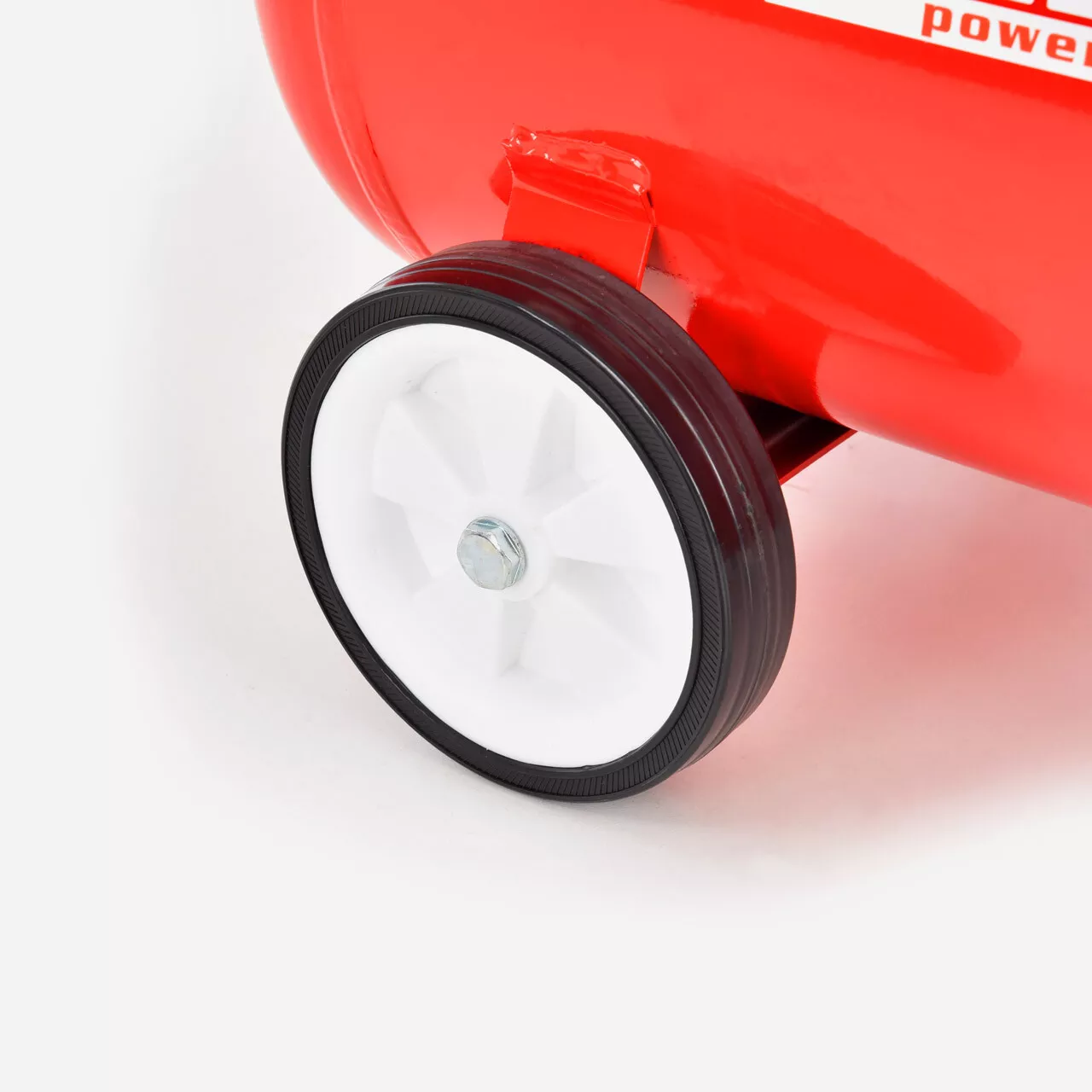 - = Dvě gumová kola a přídavné madlo pro snadnou manipulaci a přepravu