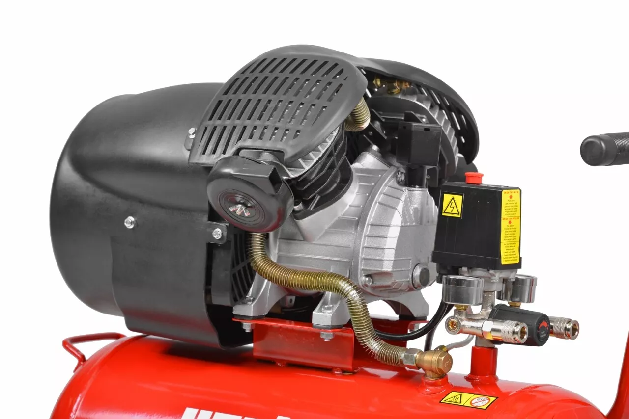 - Elektrický dvouválcový kompresor s příkonem 2200 W, sacím výkonem 316 l/min a skutečně velkým 50 l vzdušníkem.