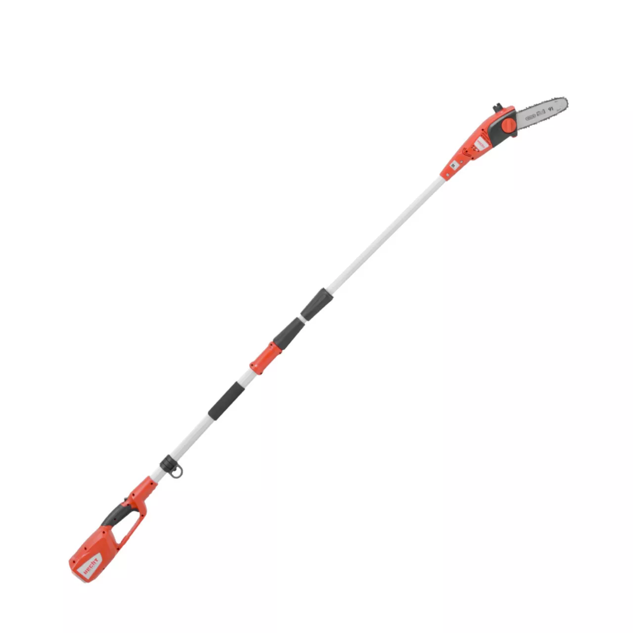 - Akumulátorová vyvětvovací pila určená pro prořezávání větví vysoko nad zemí.